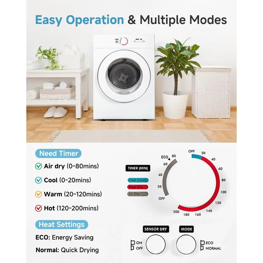 1.8 Cu.Ft Compact Dryer 1020W Portable Clothes Dryer with Stainless Steel Tub Front Load Tumble Four Functions Ideal for Small