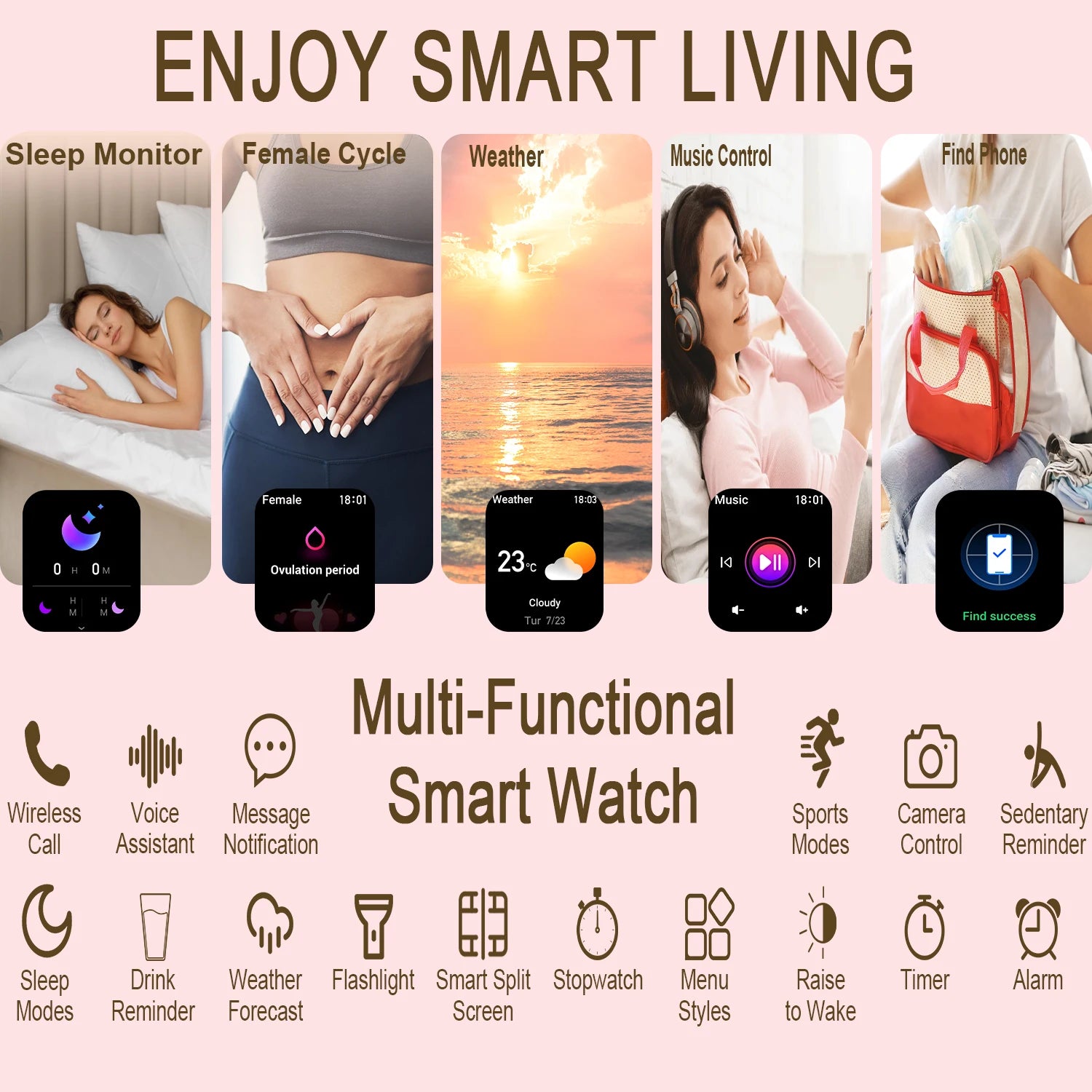 ⌚ WIRELESS CALL & SMART NOTIFICATION: Just connect the smart watch with your phone via wireless, you can dial and answer calls on your watch. The smartwatch will vibrate to remind you when your phone receives messages, Never miss any important notification. This smart watch with text and call can also control your phone's AI voice assistant.