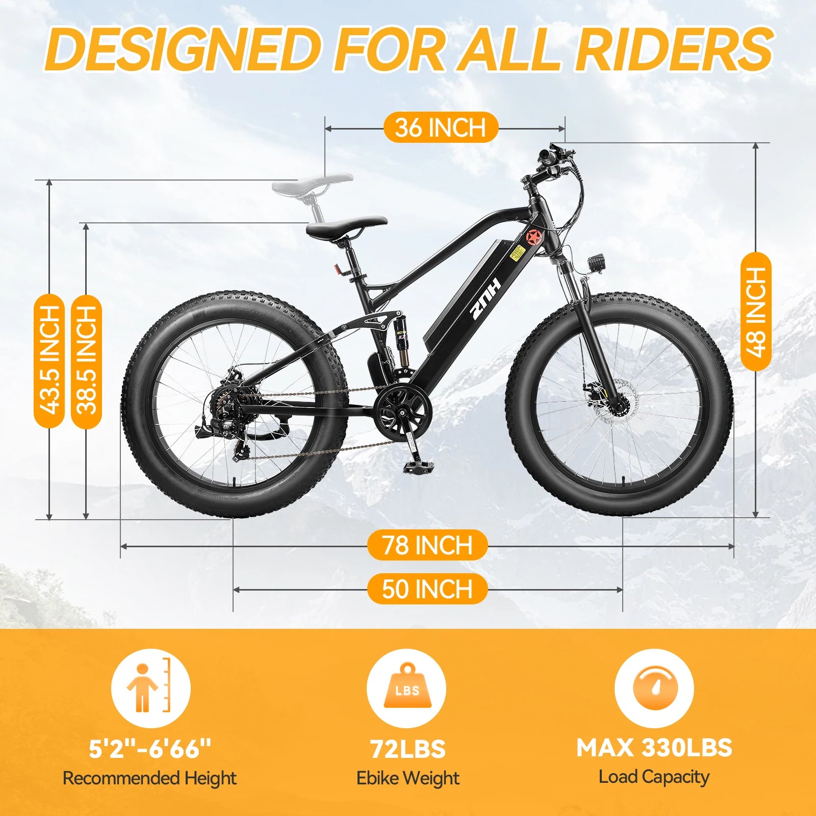 【1 Year Warranty】ZNH Electric Bicycle for Adults,1000W,48V 13Ah Battery, 26MPH Electric Bike, 26*4 Inch Fat Tire E-bike,UL 2849