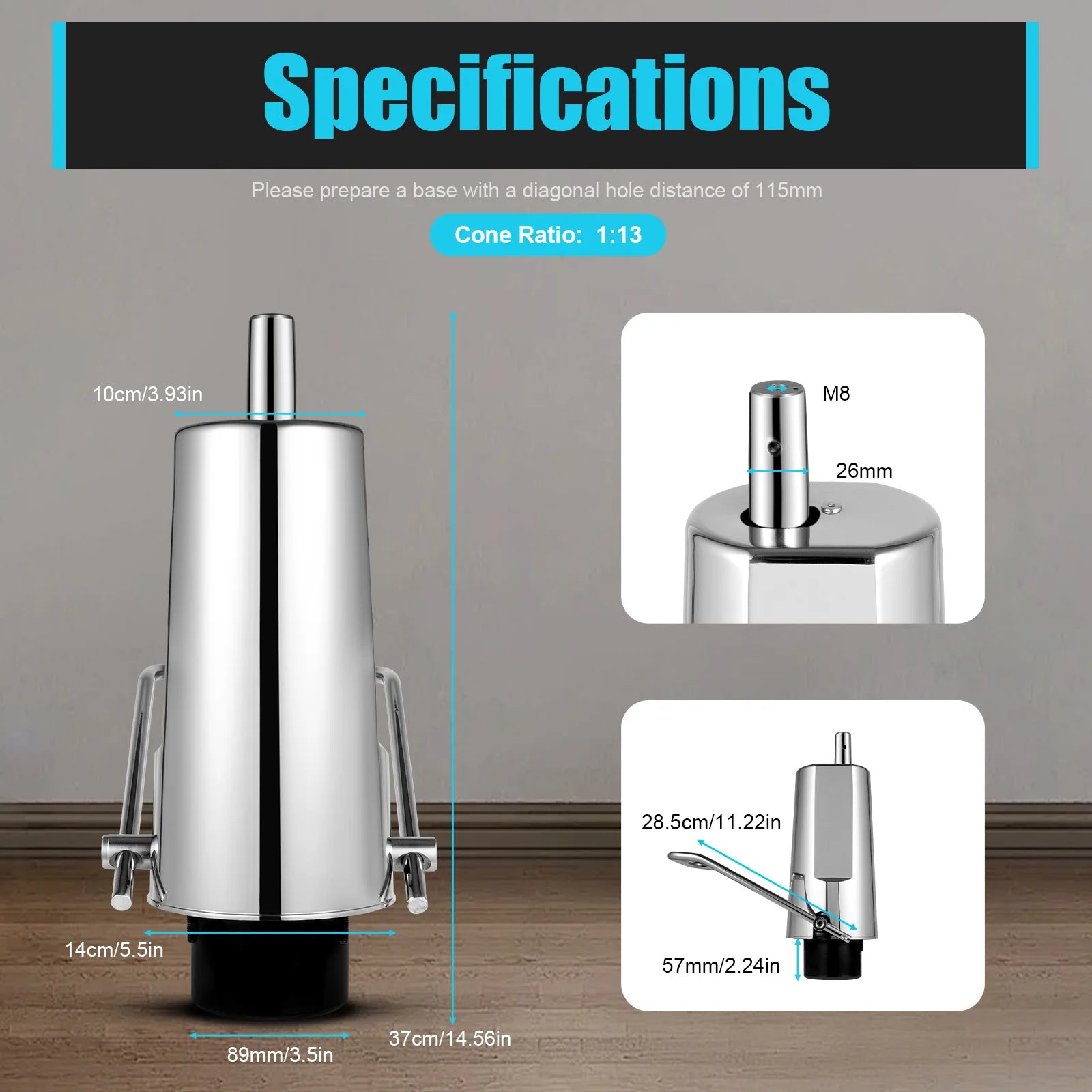 Suitable Base Diagonal Hole Spacing: 115mm/4.53in