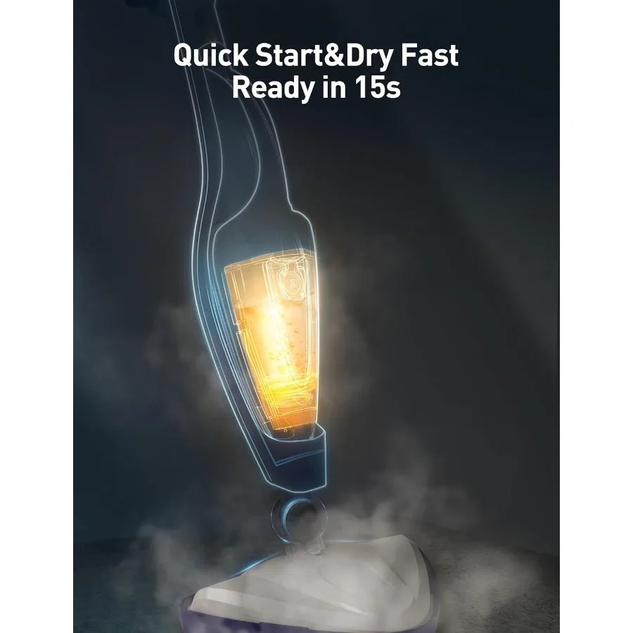 12-in-1 Steam Mop Fast 15-Sec Heat-Up 1500W Detachable Handheld Steam Cleaner with 2 Dirt Grip Pads Removes 99.99 Stubborn Stai