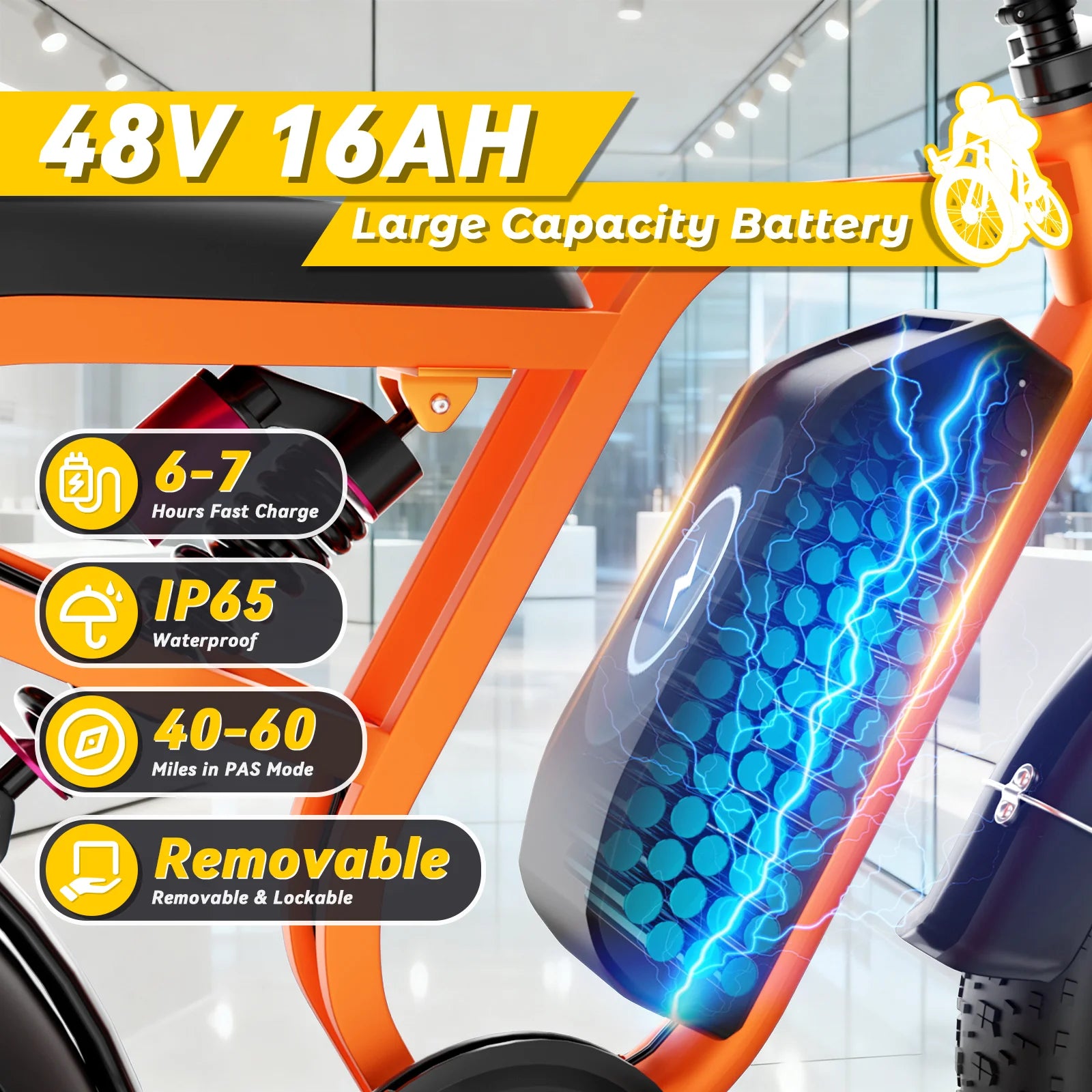 1500W Peak Electric Bike Moobelo B8 - Winter Fat Tire 48V 16AH Long Range 30MPH | Shimano 7-Speed All-Terrain E-Bike for Adults