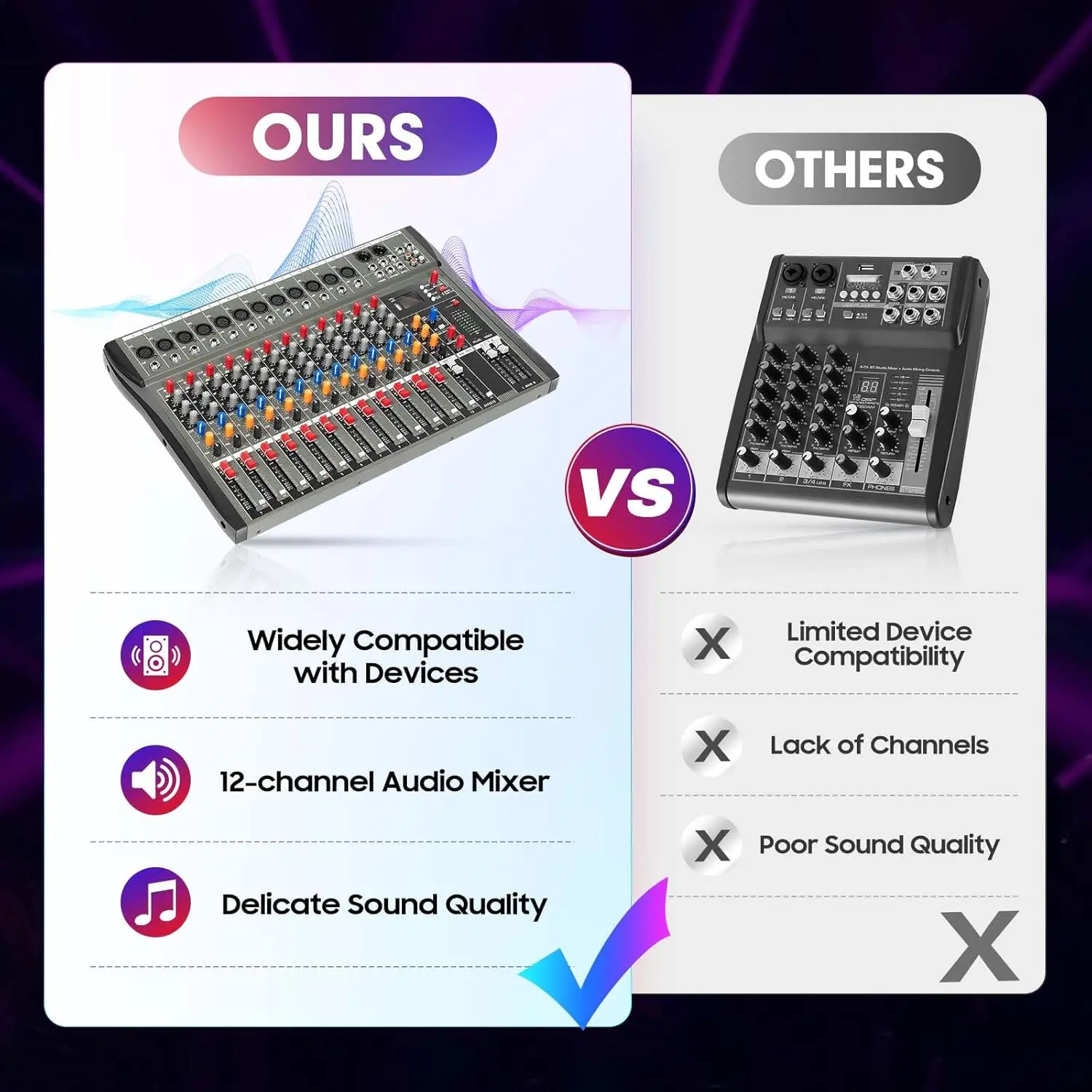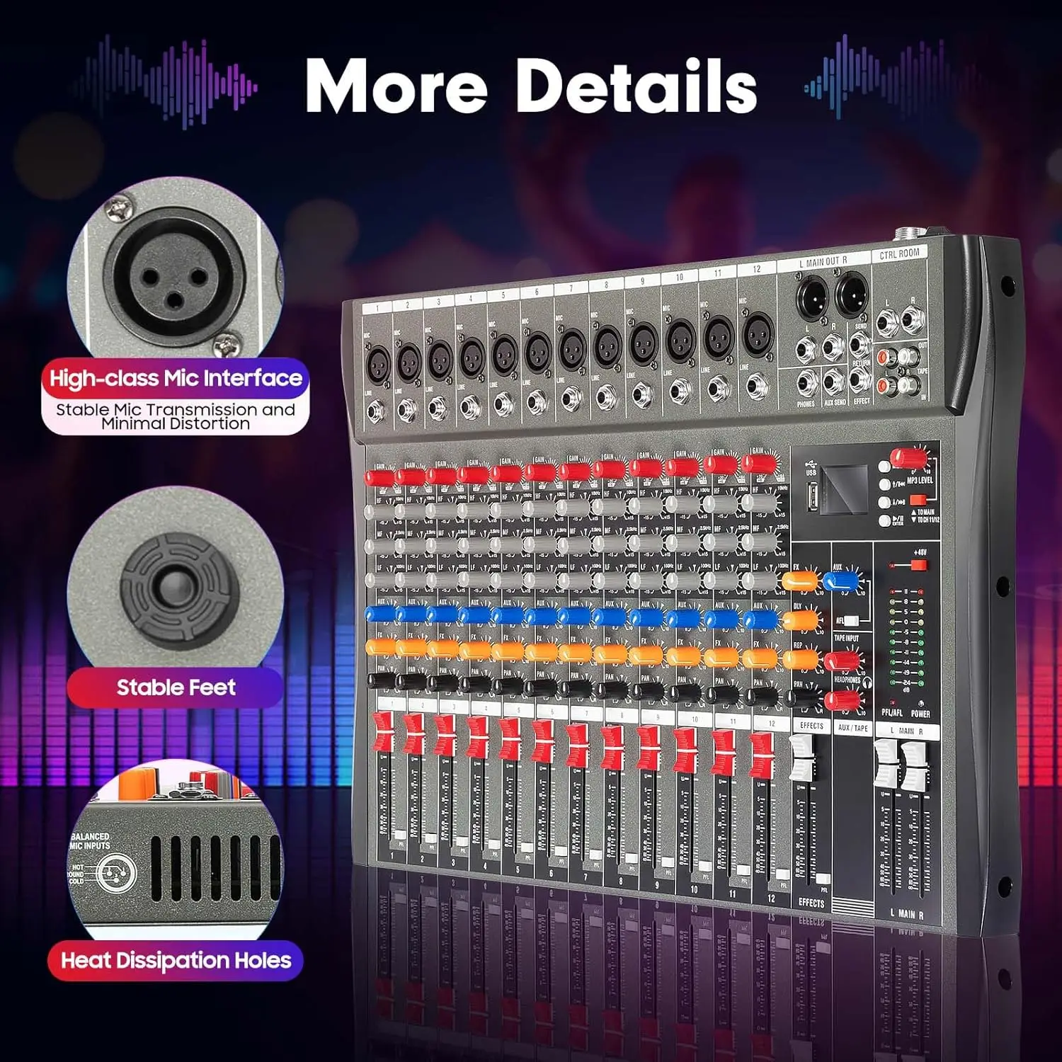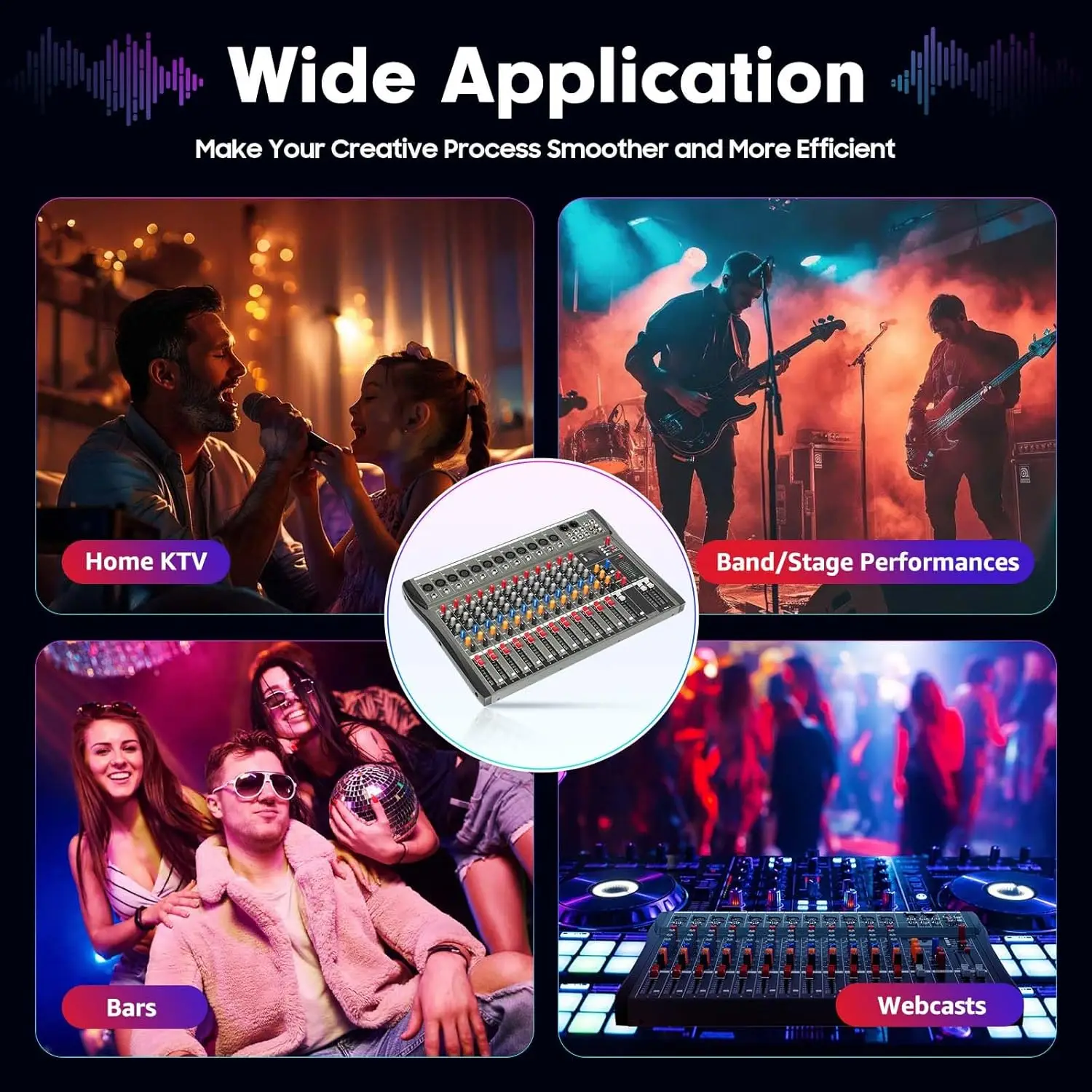Real-time Monitoring: Its headphone jack allows you to access headphones (not included) to monitor the electrical frequency signal of each channel in real-time, and together with the audience to feel the excitement of live music, and allows you to adjust the sound channel in a timely and precise manner to obtain more desirable results.