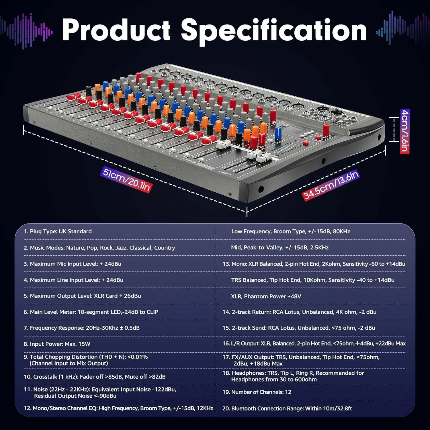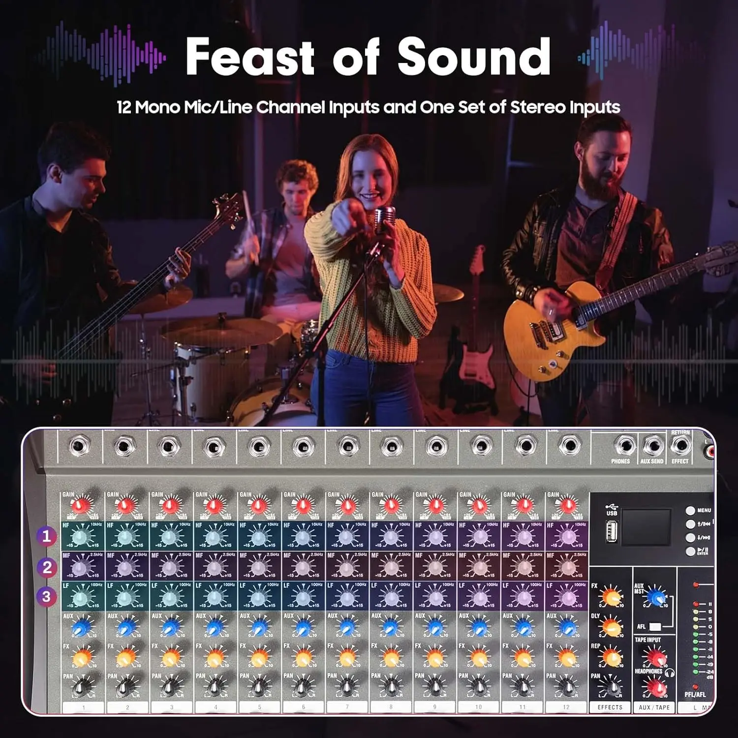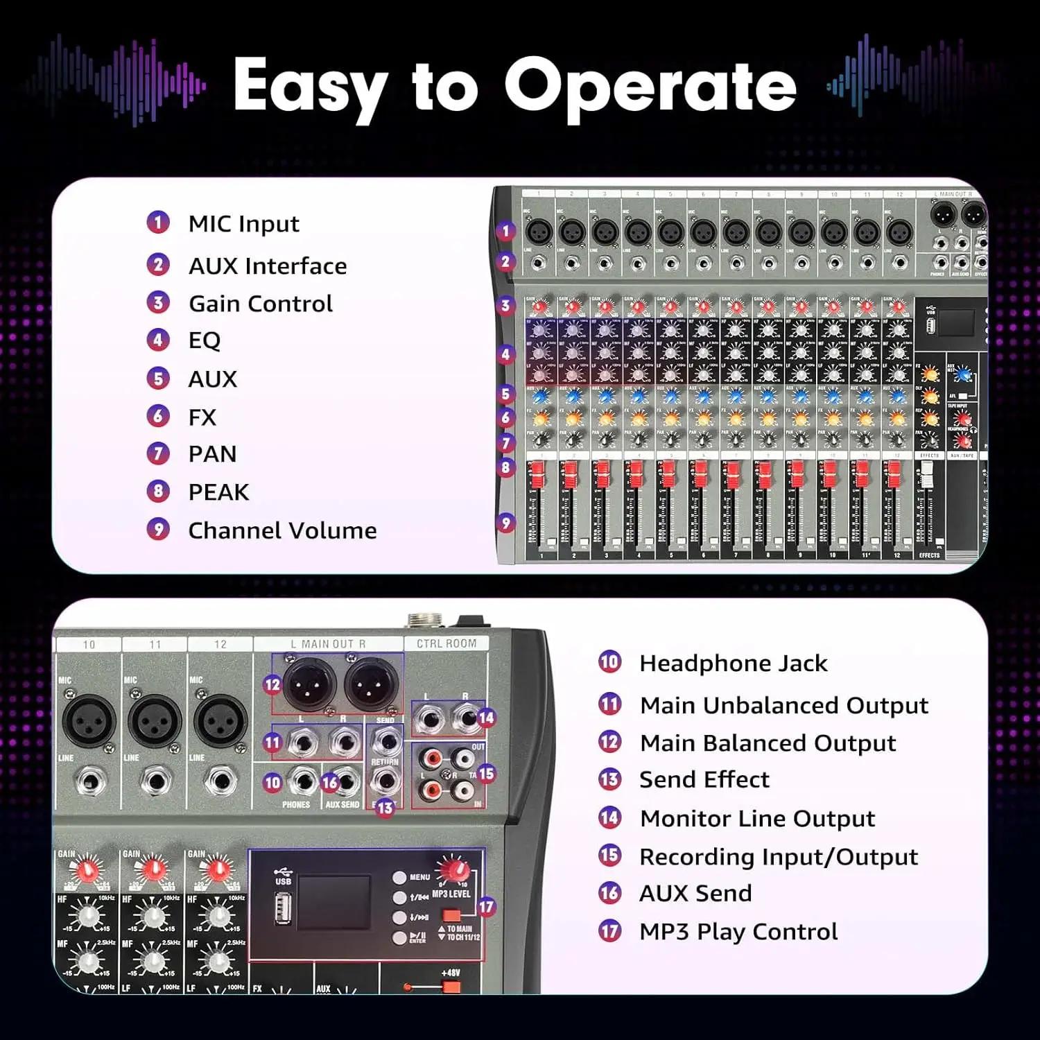 Real-time Monitoring: Its headphone jack allows you to access headphones (not included) to monitor the electrical frequency signal of each channel in real-time, and together with the audience to feel the excitement of live music, and allows you to adjust the sound channel in a timely and precise manner to obtain more desirable results.