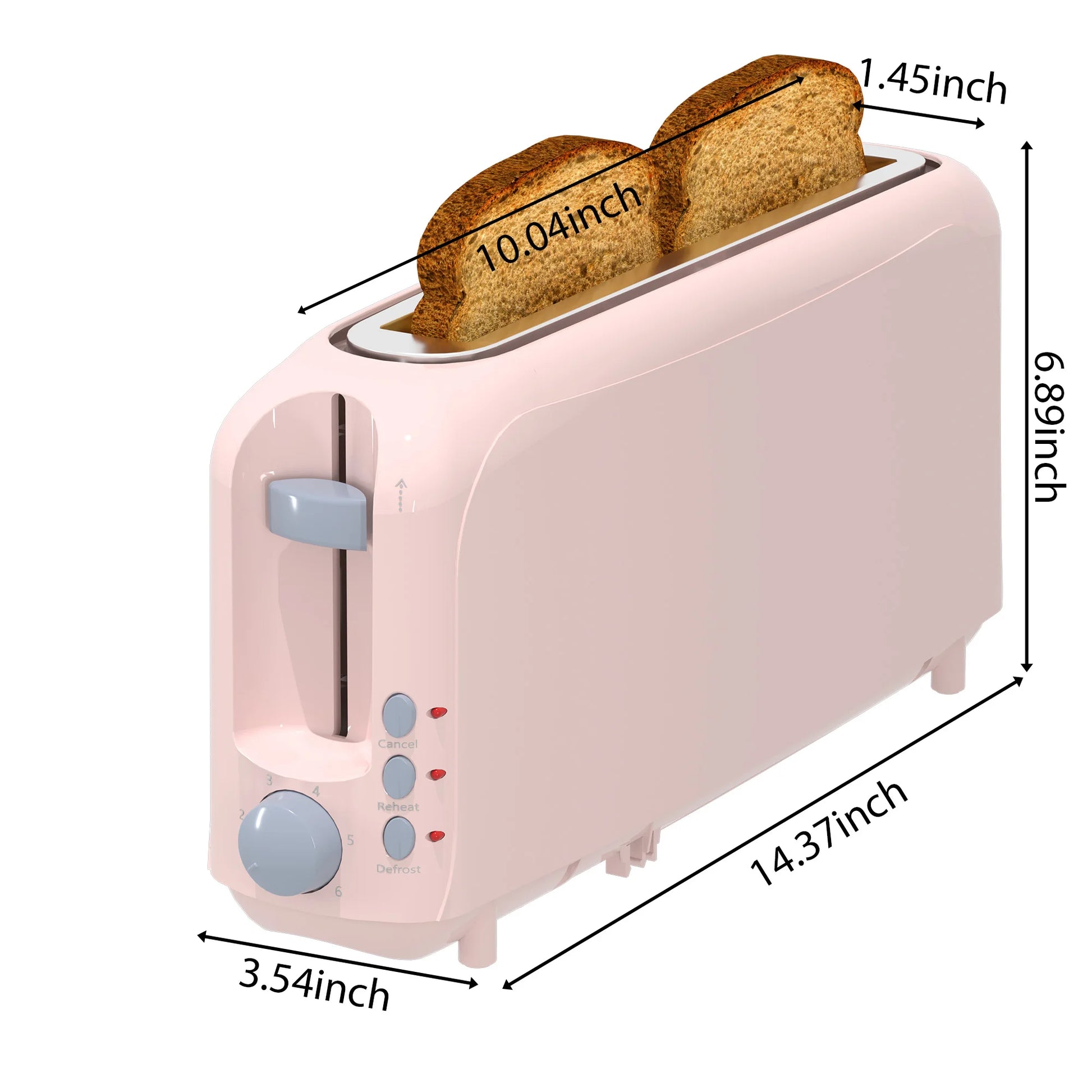 2-Slice Slim Toaster-10"Long Slot,6 Shade Settings,Cancel/Reheat/Defrost, Removable Crumb Tray,Auto Shut-Off