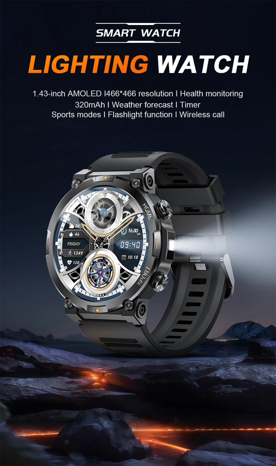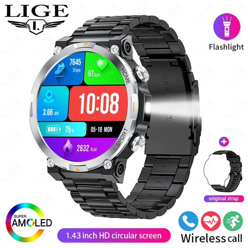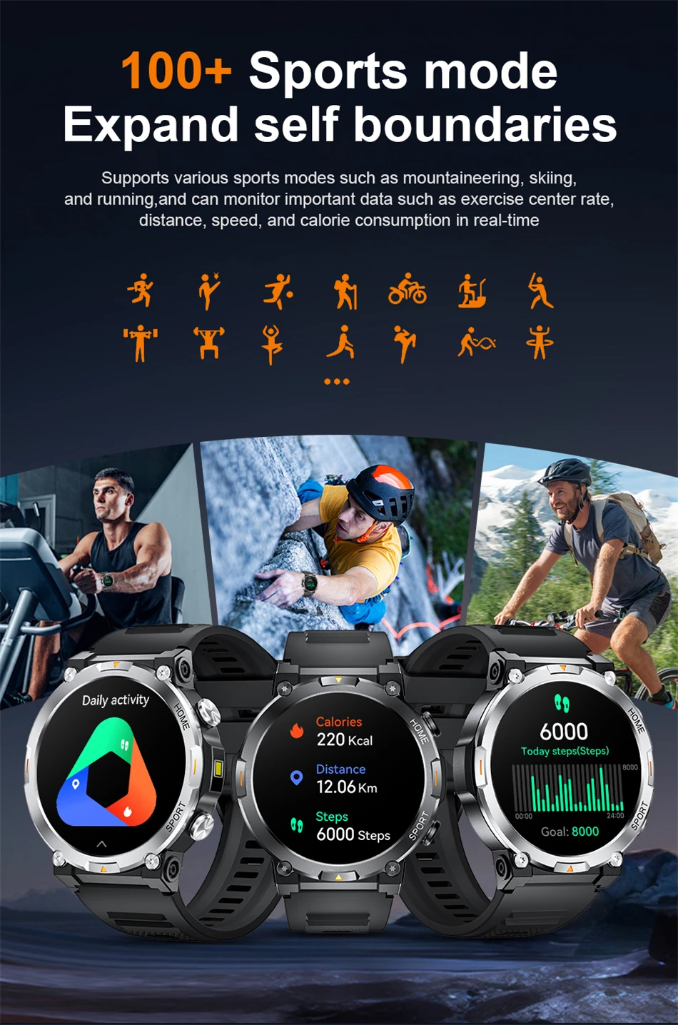 2025 New For Huawei Xiaomi Military Smart Watch Men Flashlight Compass Waterproof Outdoor Sport Tracker BluetoothCall Smartwatch