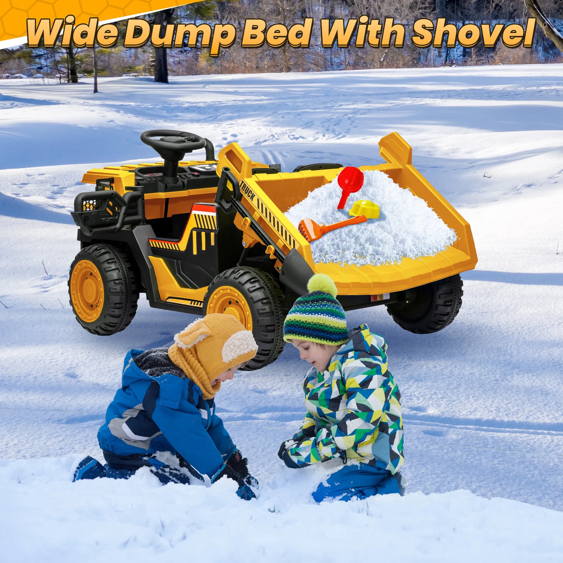 24V Ride on Toys w/Remote Control, 2 Seater 400W Ride on Dump Truck, Electric Powered Ride on w/Dump Bed, 3 Speeds, Shovel, Blue