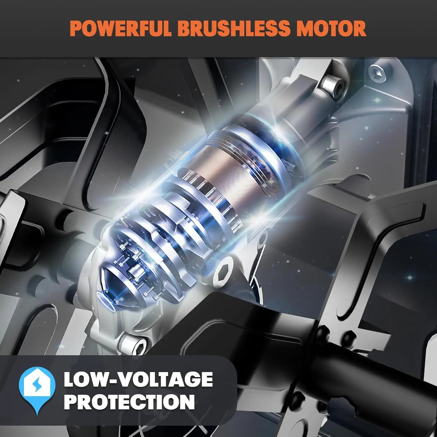 - Brushless motor delivers consistent performance with lower heat buildup, extending motor life, reducing maintenance, and enabling longer sessions between charges.