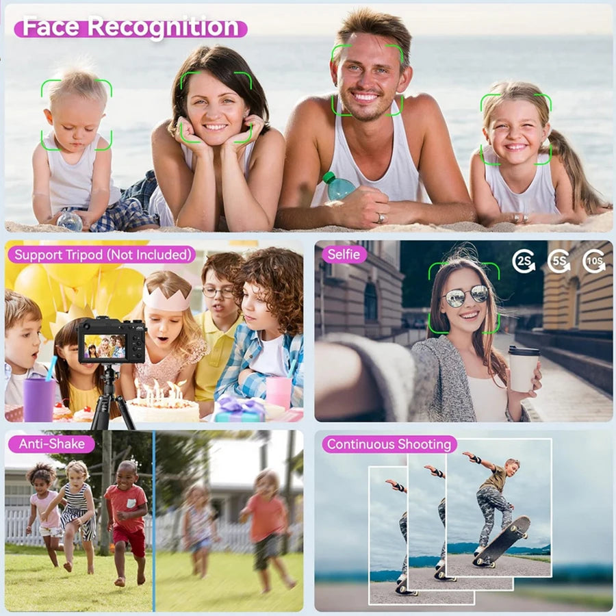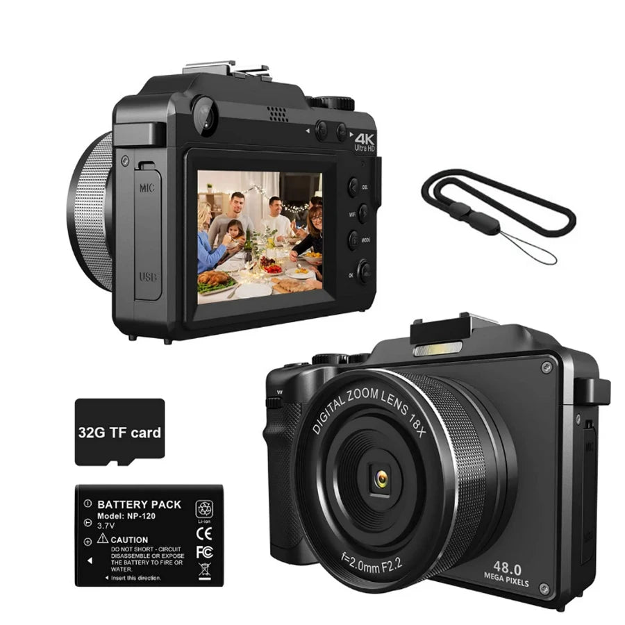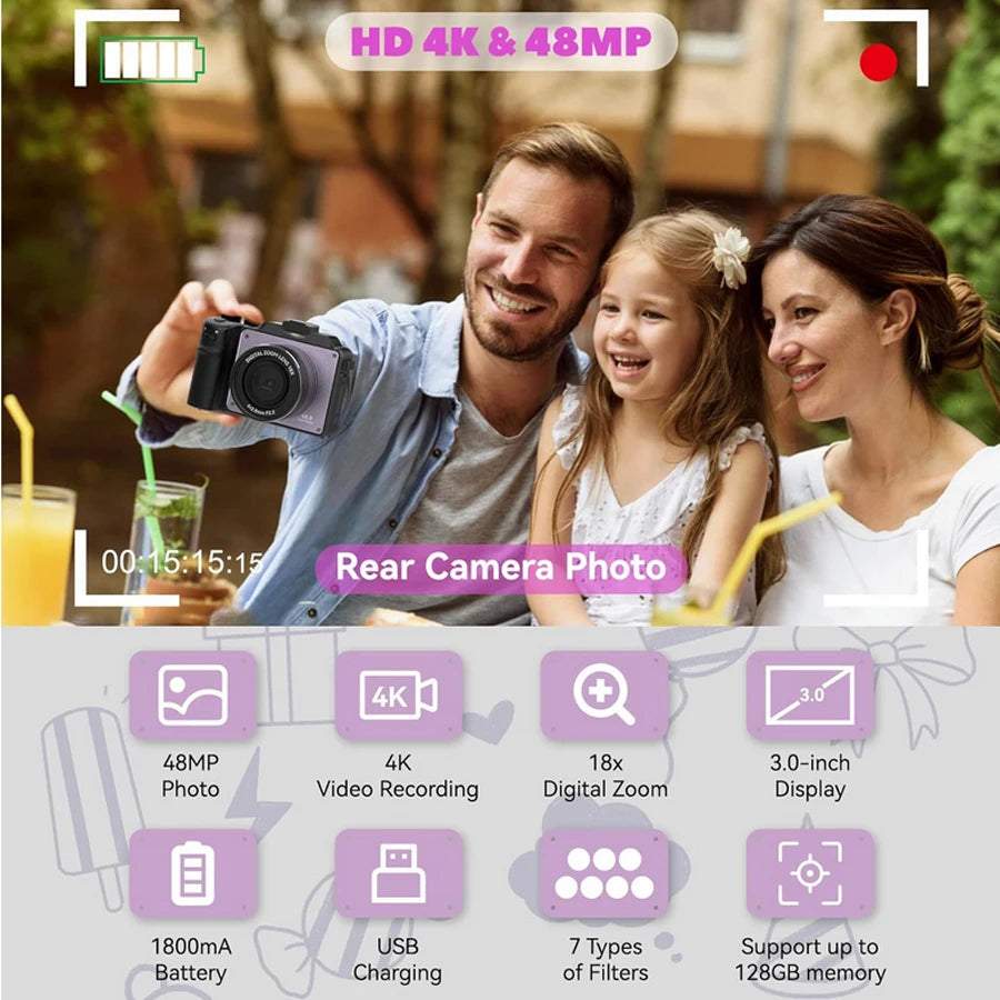 48MP Camera for Photography,4K Digital Camera for Kids and Adults with Front and Rear Dual Cameras,18X Digital Zoom,Built-in 7 C