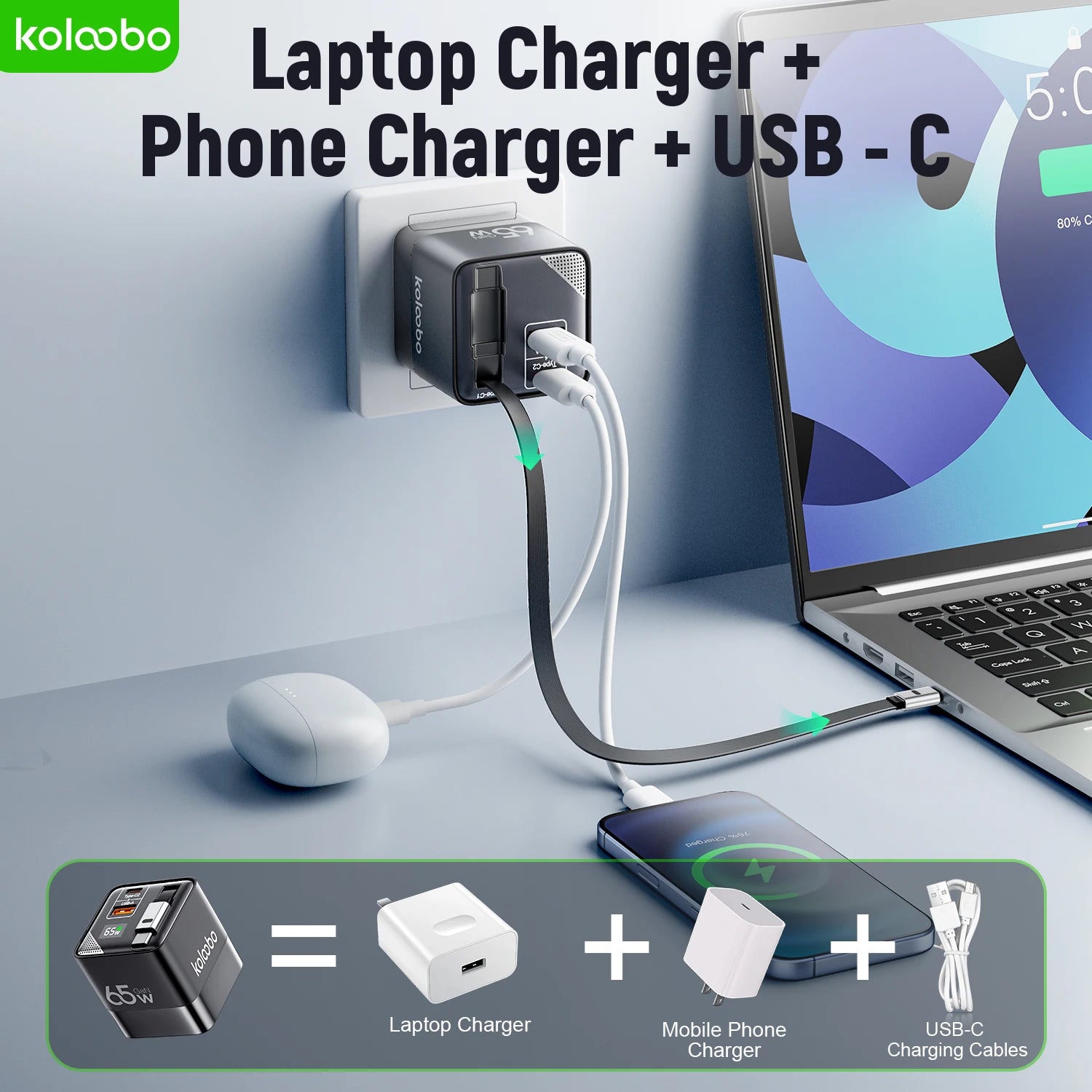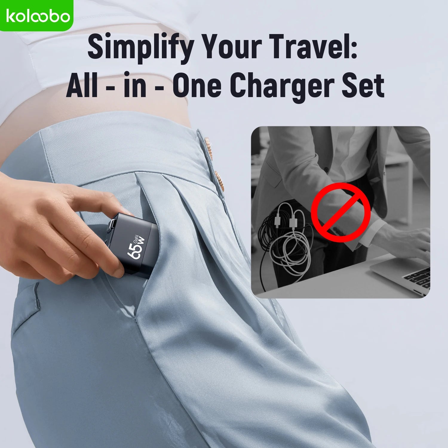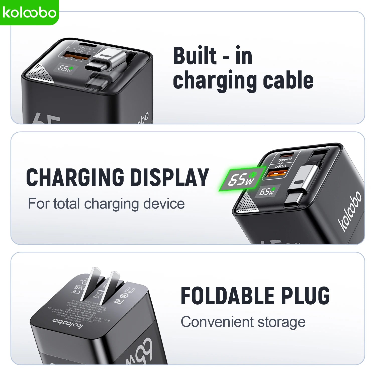 65W GaN Fast Charger Three-Port Charging Head Built-in 80cm Retractable TypeC Cable for iPhone16 15 14 13 Promax Xiaomi Samsung