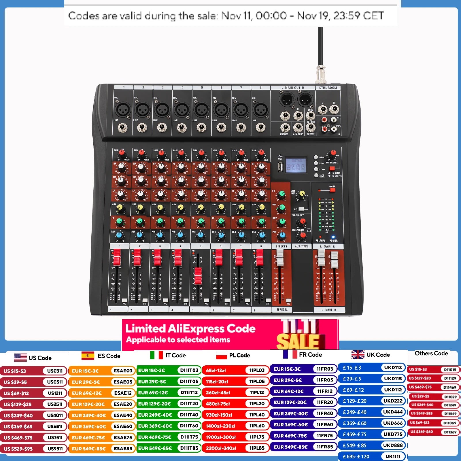 1*8-Channel Audio Mixer