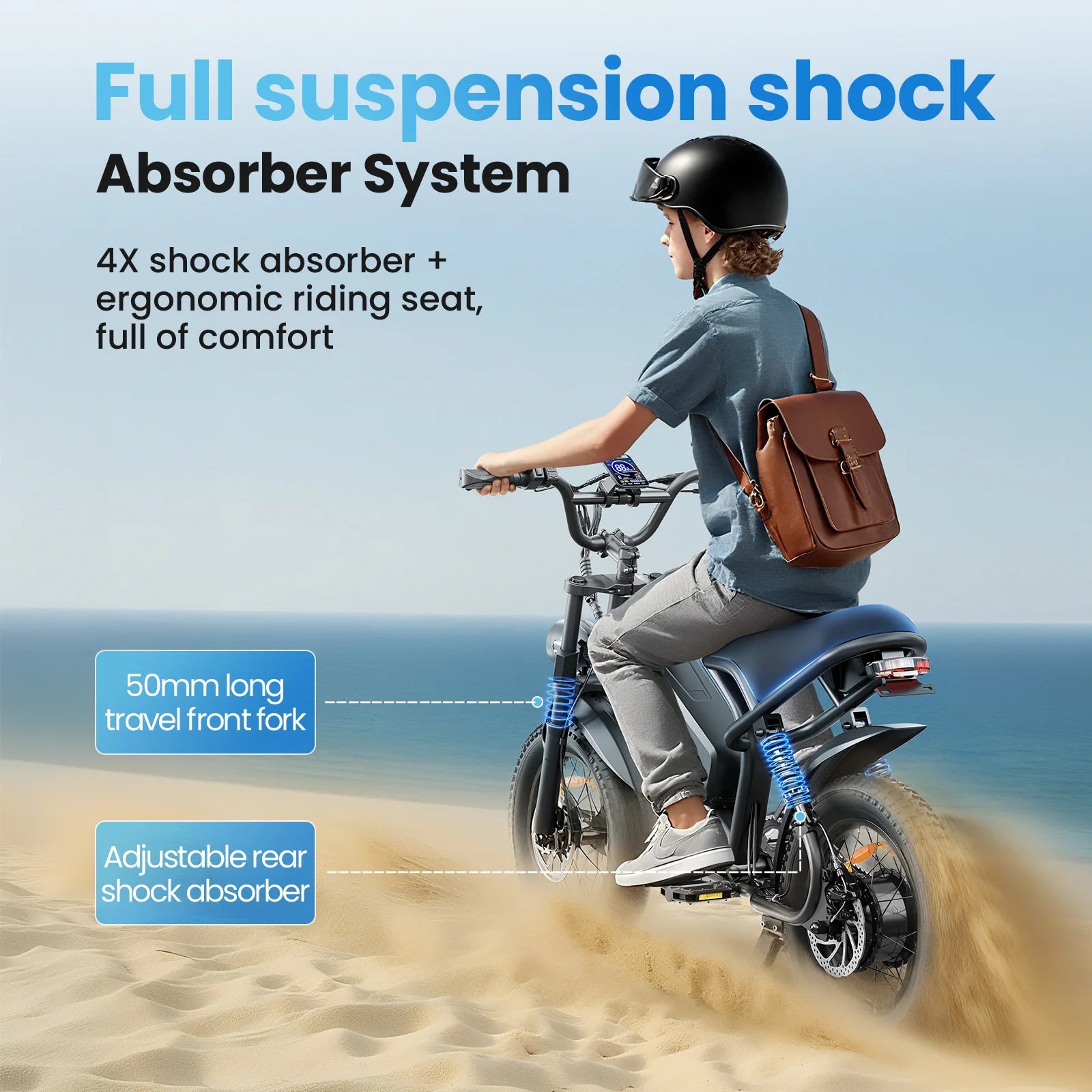 750W Electric Dirt Bike for Adults & Teens – 16" x3.0 Fat Tire Electric Bike, 48V 15Ah Battery, 5 PAS, Electric Bicycle