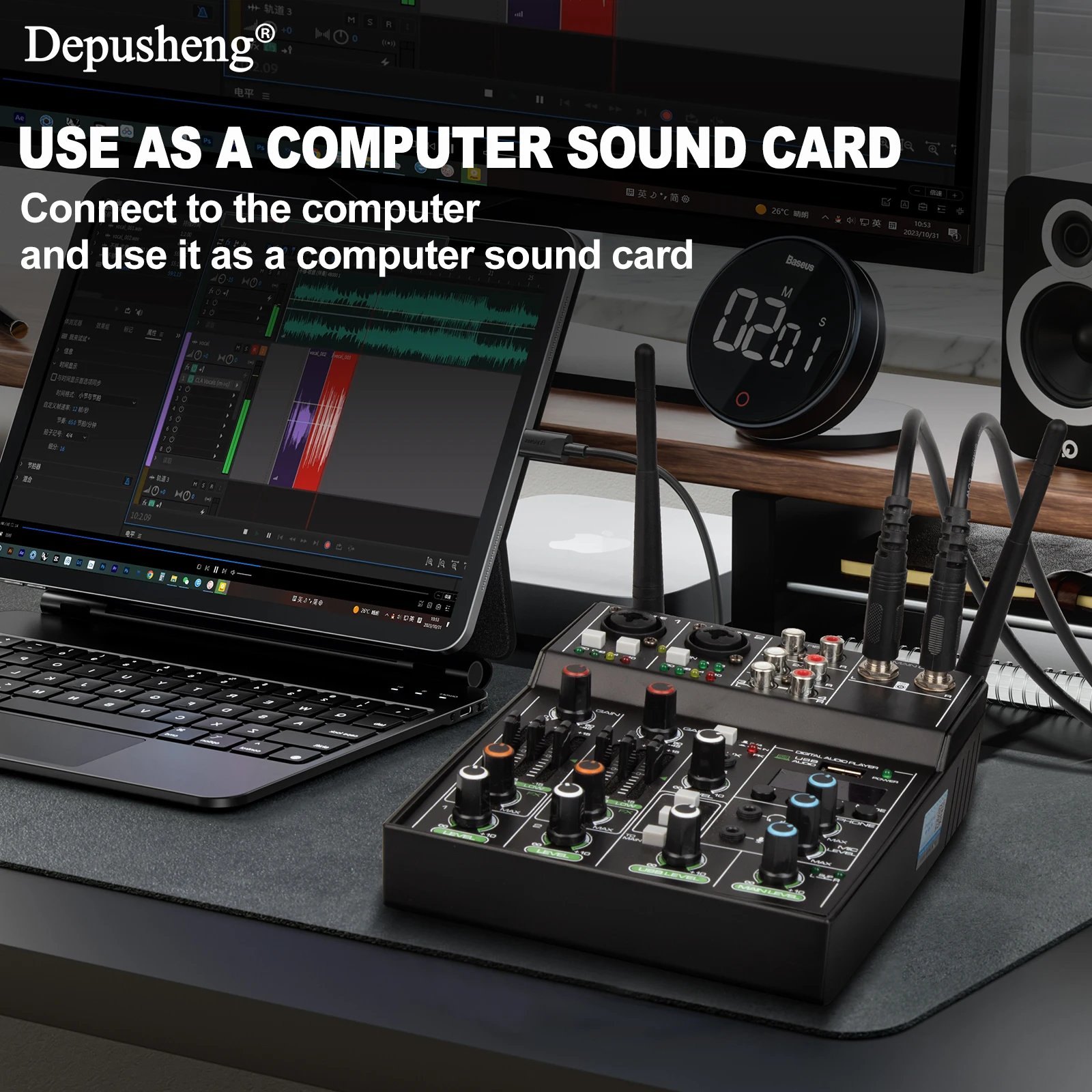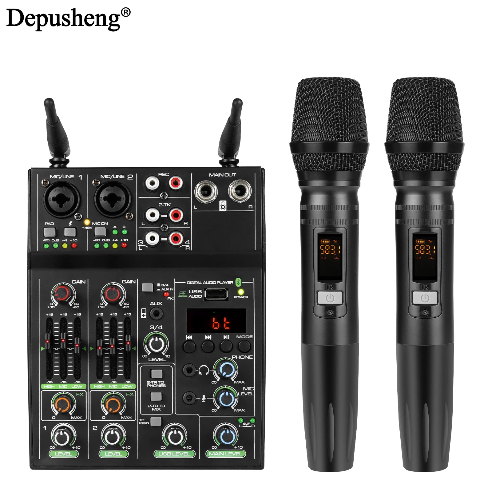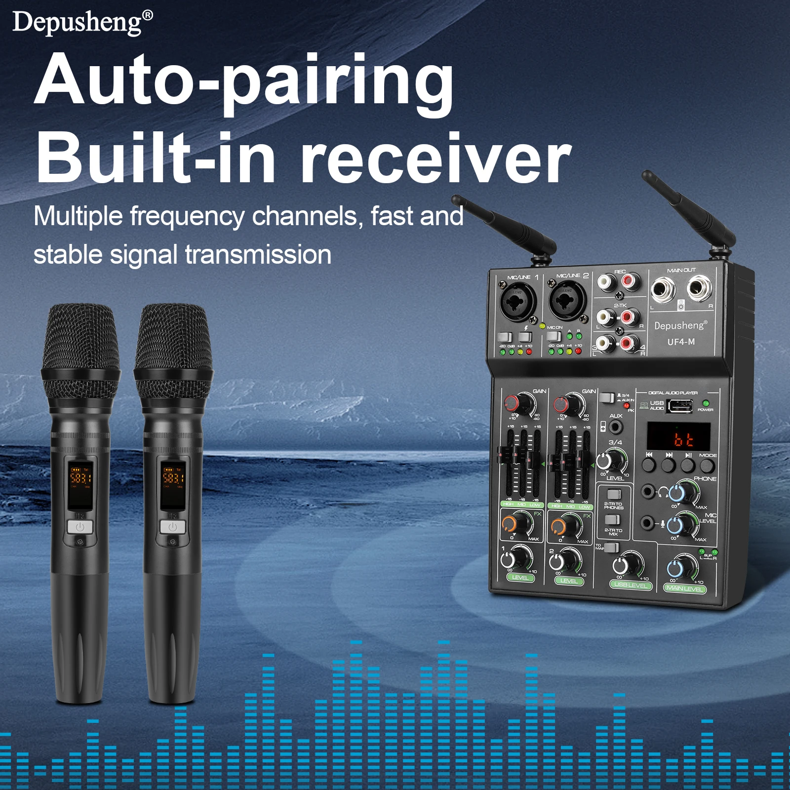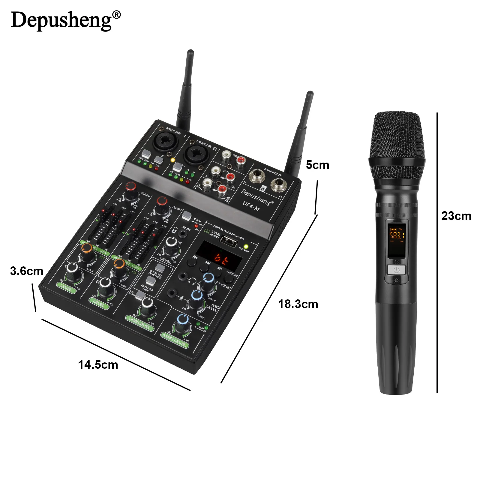 Audio Mixer 4 Channel High Power Amplifie Sound mixing with Microphone Depusheng UF4-M Digital Board Console for Karaoke Stage