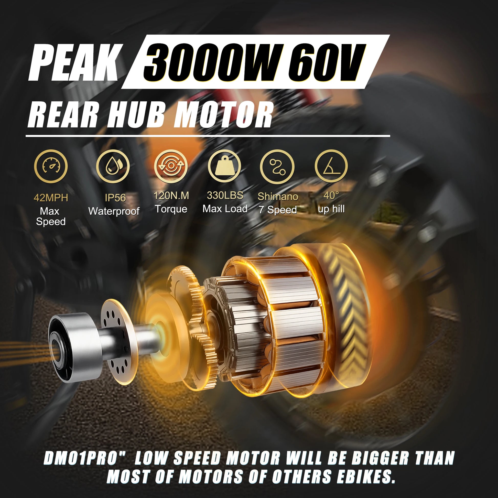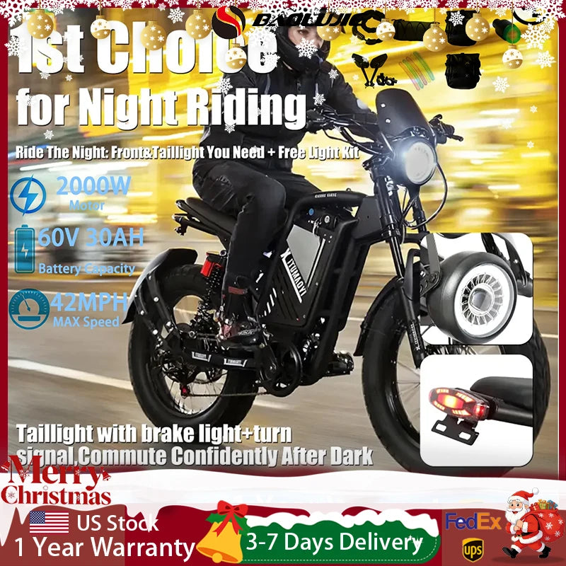 BAOLUJIE DM01 Motor Electric Bicycle,E-Bike Motorcycle for Adults,60V 30AH Lithium Battery,42 MPH Electric Bike【1 Year Warranty】