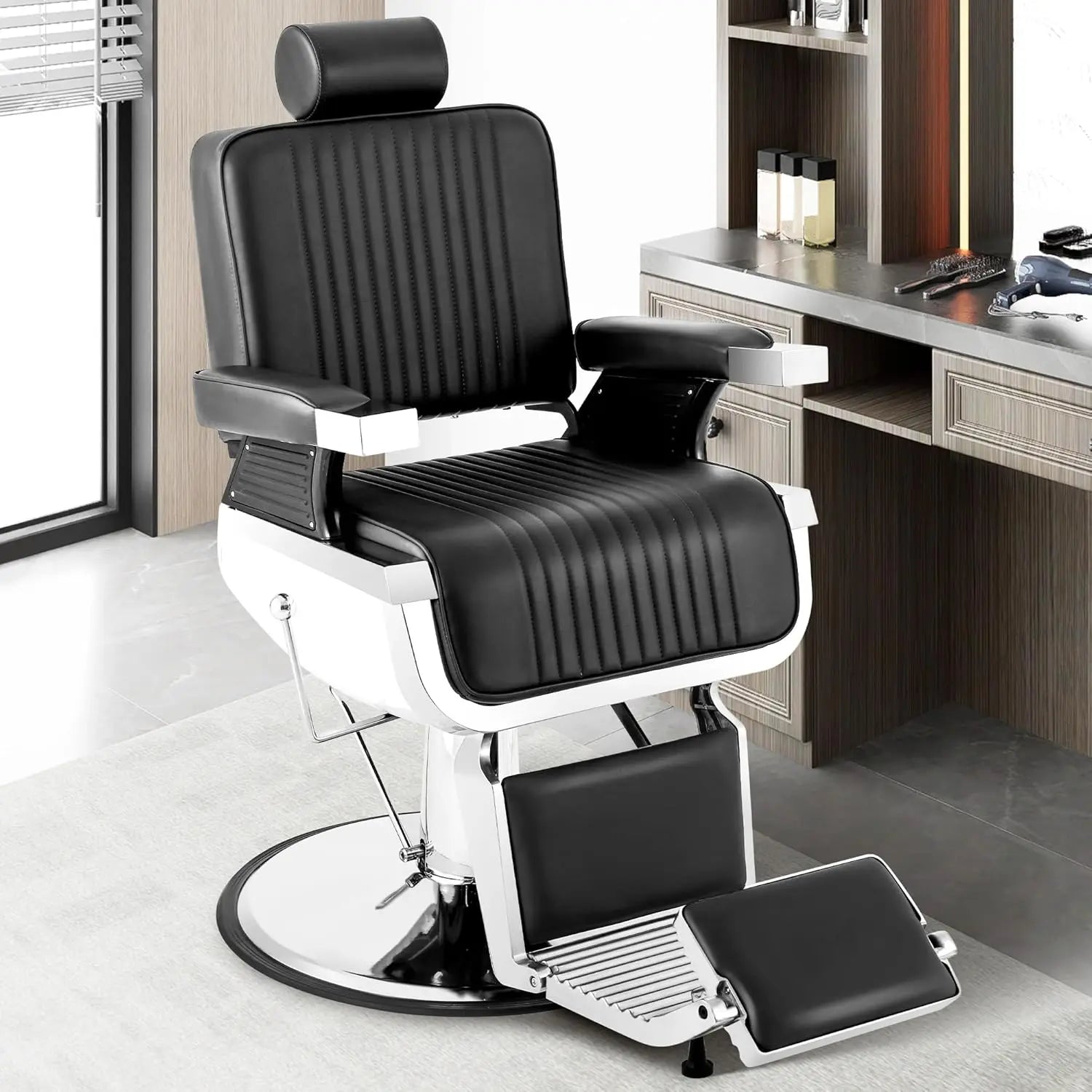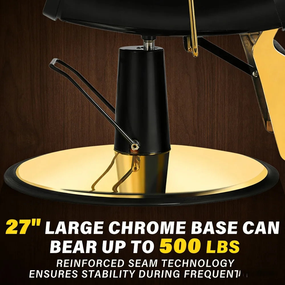 Black Gold Barber Chair, Reclining Salon Chair Hair Stylist, Barber Chairs for Barbershop Supports up to 500lbs, Professional Sa