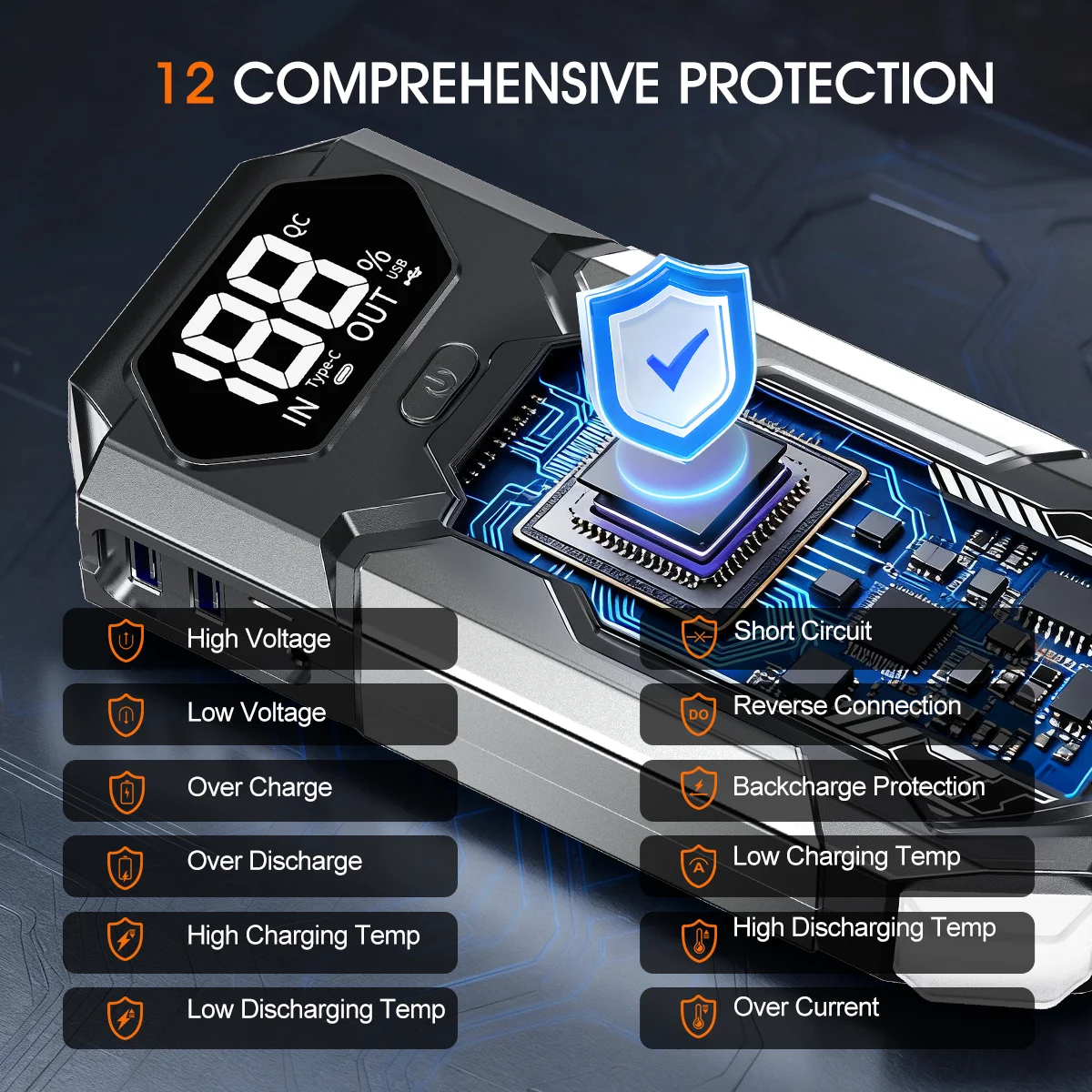 Car Jump Starter Battery Charger Emergency Power Bank Booster for 12V Gasoline and Diesel Vehicles Starting