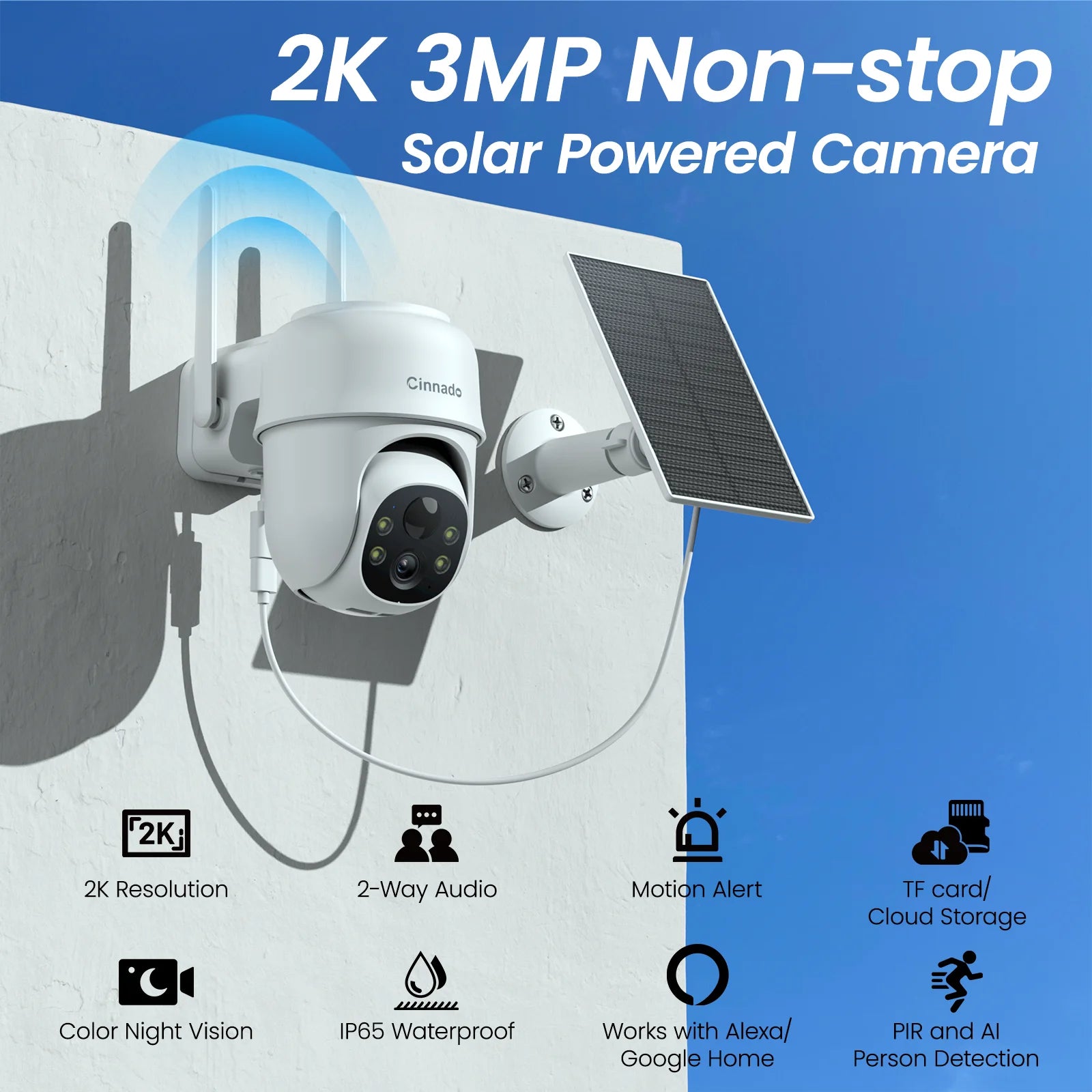 Cinnado 2K Solar/Battery Powered Cameras for 360° Home Security, 2.4G WiFi Outdoor Camera Wireless, Human Detection