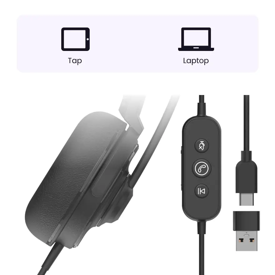 Directly connect the headset to a USB compatible devices, USB-C with USB-A Adapter provides you other connection options for phones and tablets.