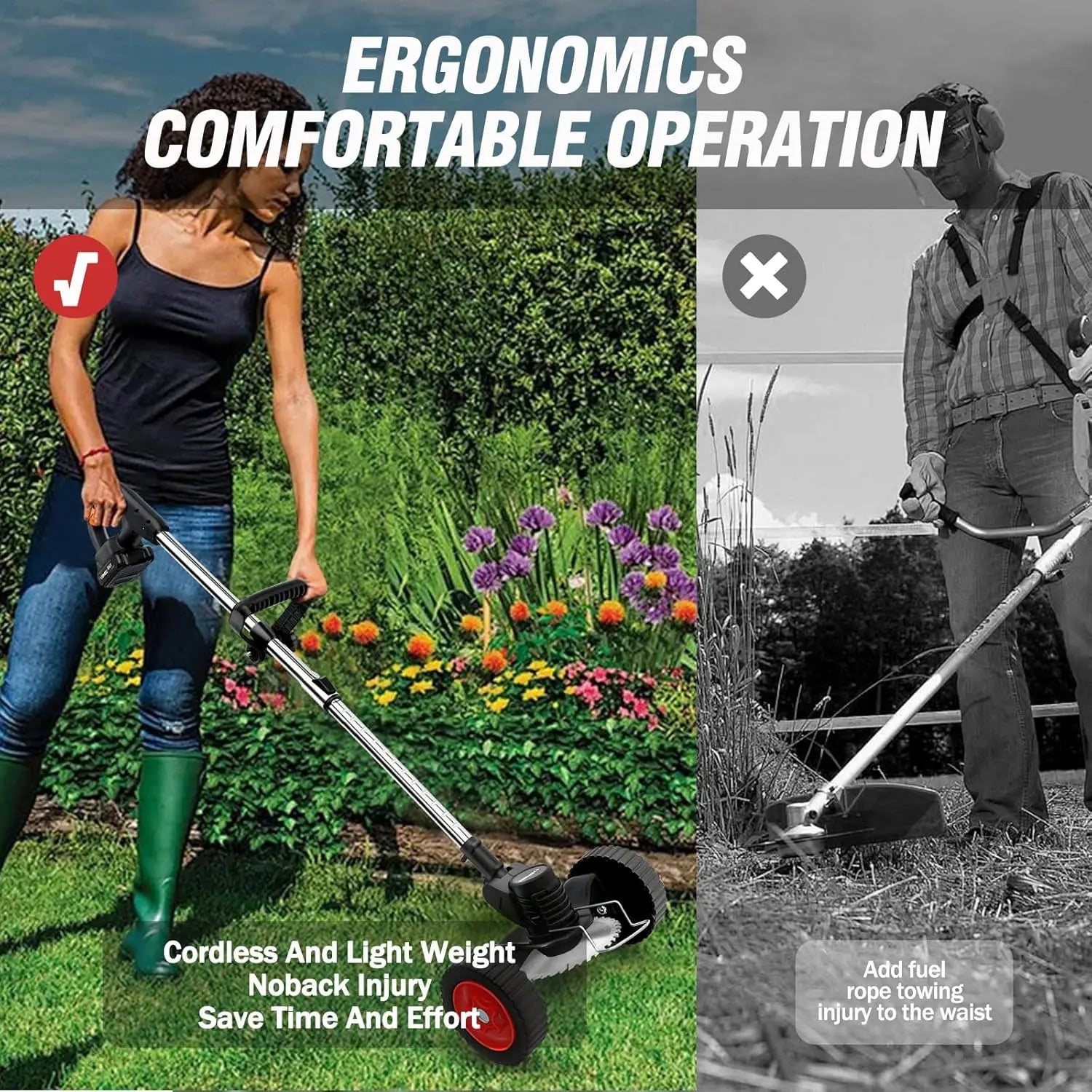 Cordless 21V Electric Weed Trimmer With Wheels 3 In 1