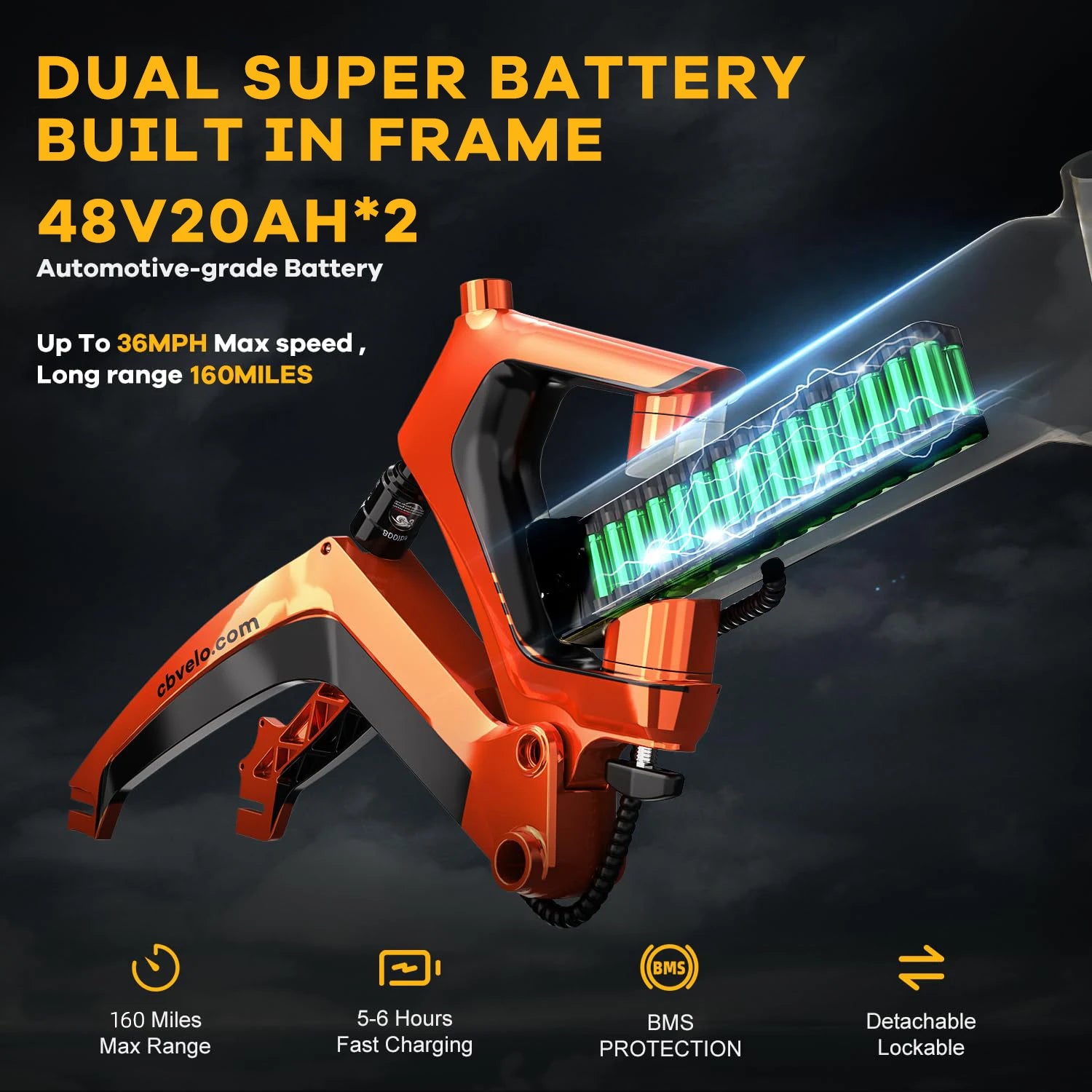 Cybervelo 2000W Peak Motor Folding E-bike, 20Ah Dual Bulit-in Battery Electric Bicycle, 8-Speed Shift 20” Fat All Terrain EK6