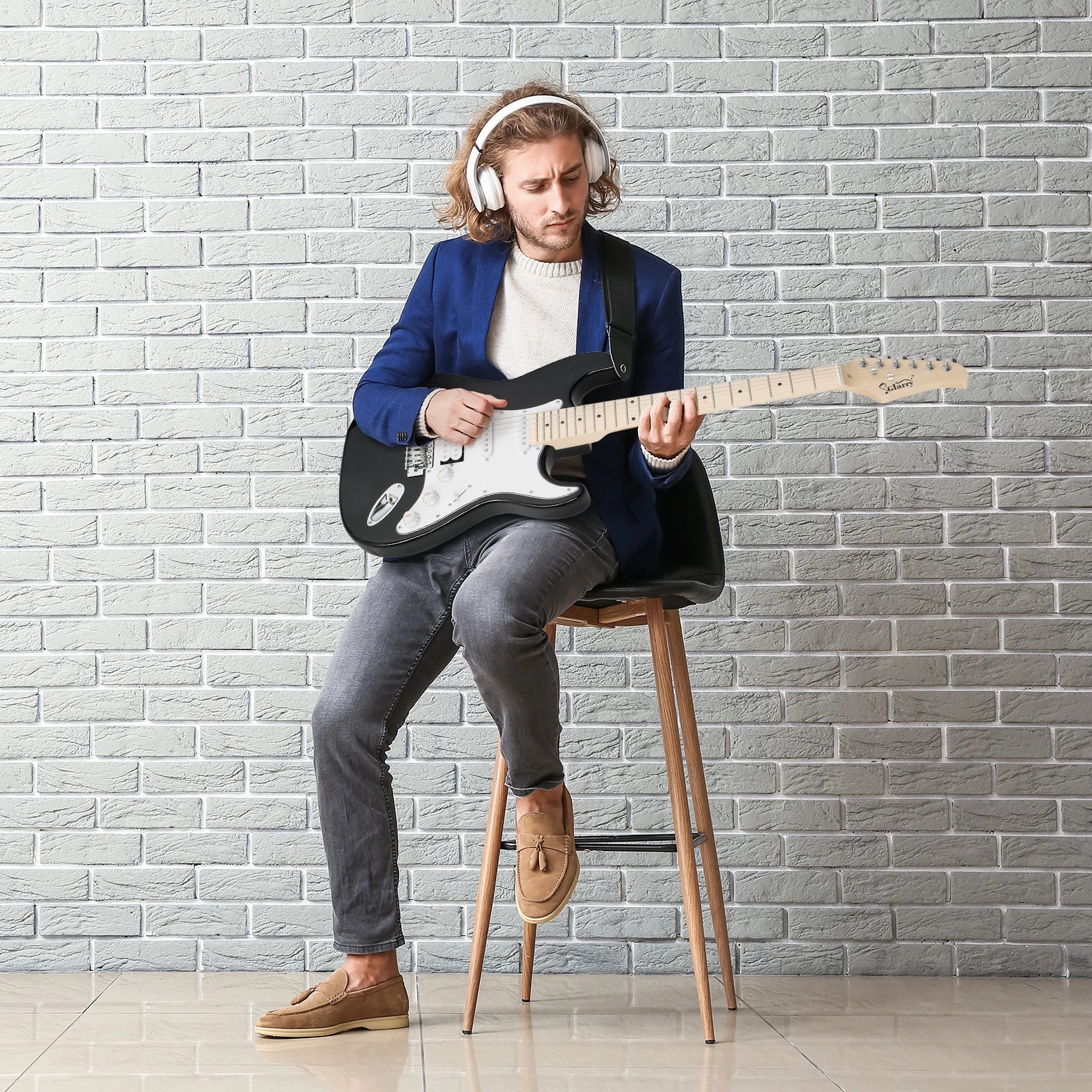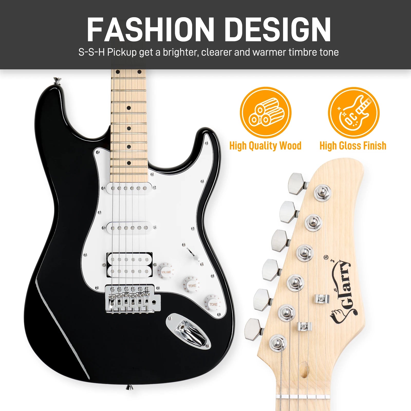 [Do Not Sell on Amazon] Glarry GST Stylish H-S-S Pickup Electric Guitar Kit with 20W AMP Bag Guitar Strap Black