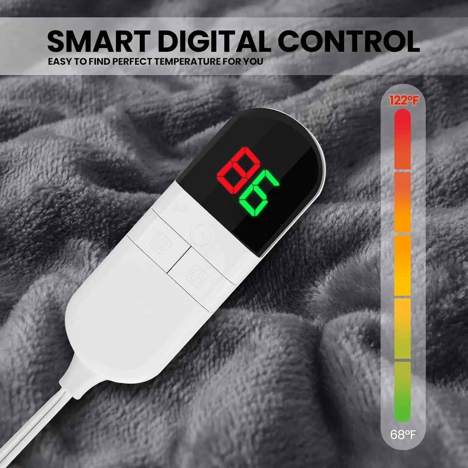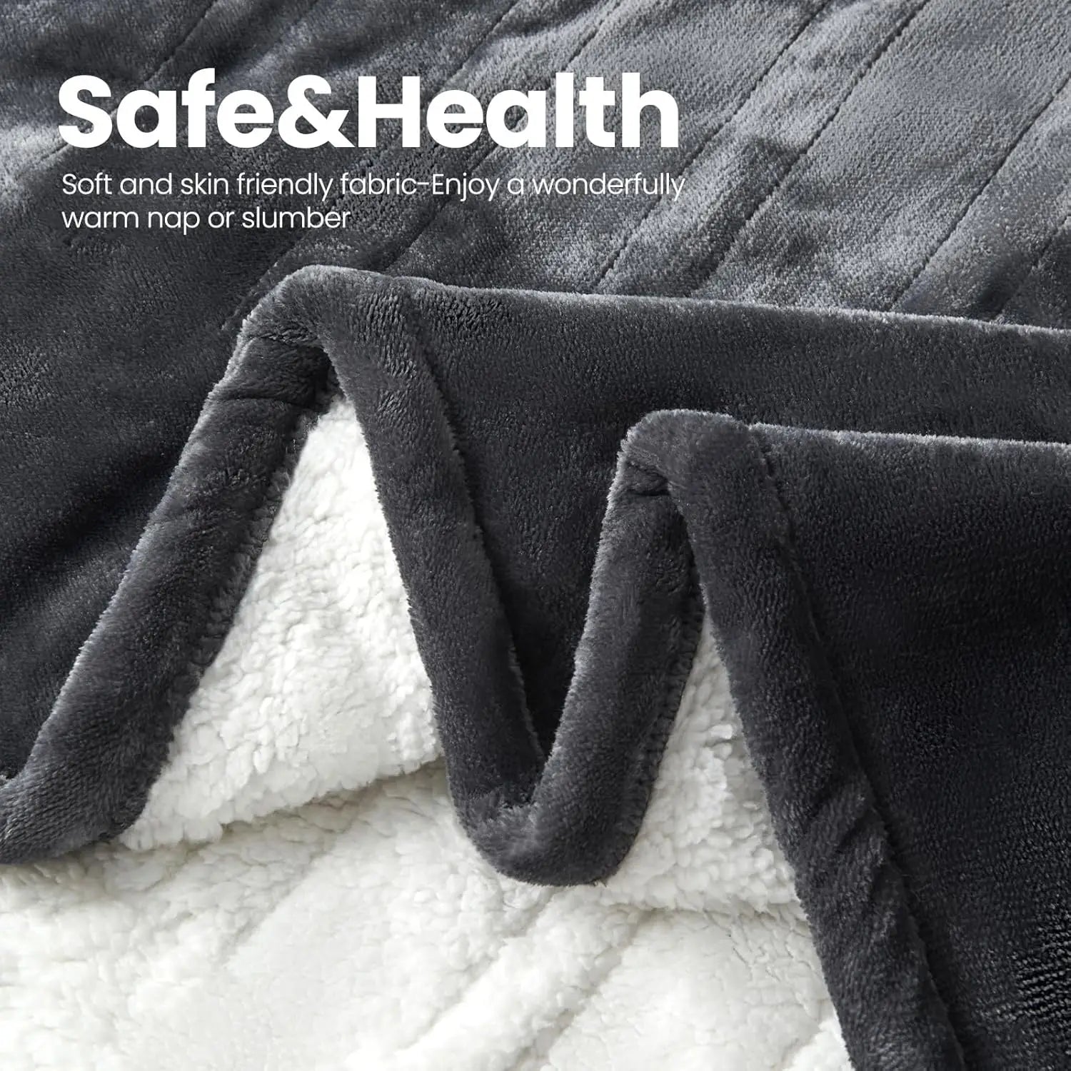 Electric Heated Blanket, Fast Heating with 6 Levels & Auto Off, Soft Flannel & Sherpa Throw 50x60 Inches - Grey
