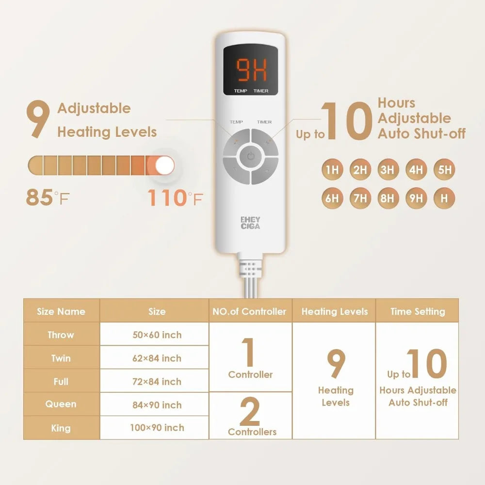 Electric Heated Blanket Throw with Faux Fur, 10-Hour Auto Shut Off, 9 Heat Levels, Fast Warming for Cozy Comfort