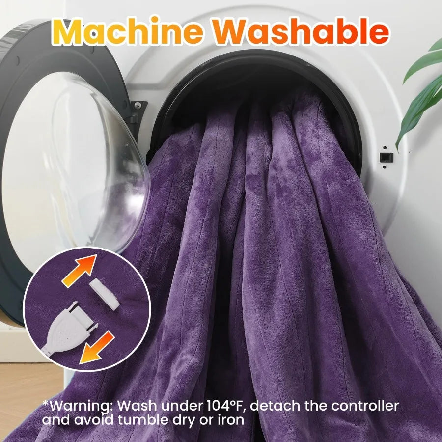 Electric Heated Blanket Twin Size Soft Flannel Fast Heating Blanket Purple Color 62"x 84" 10 Heating Levels and 0.5-12H Auto Of