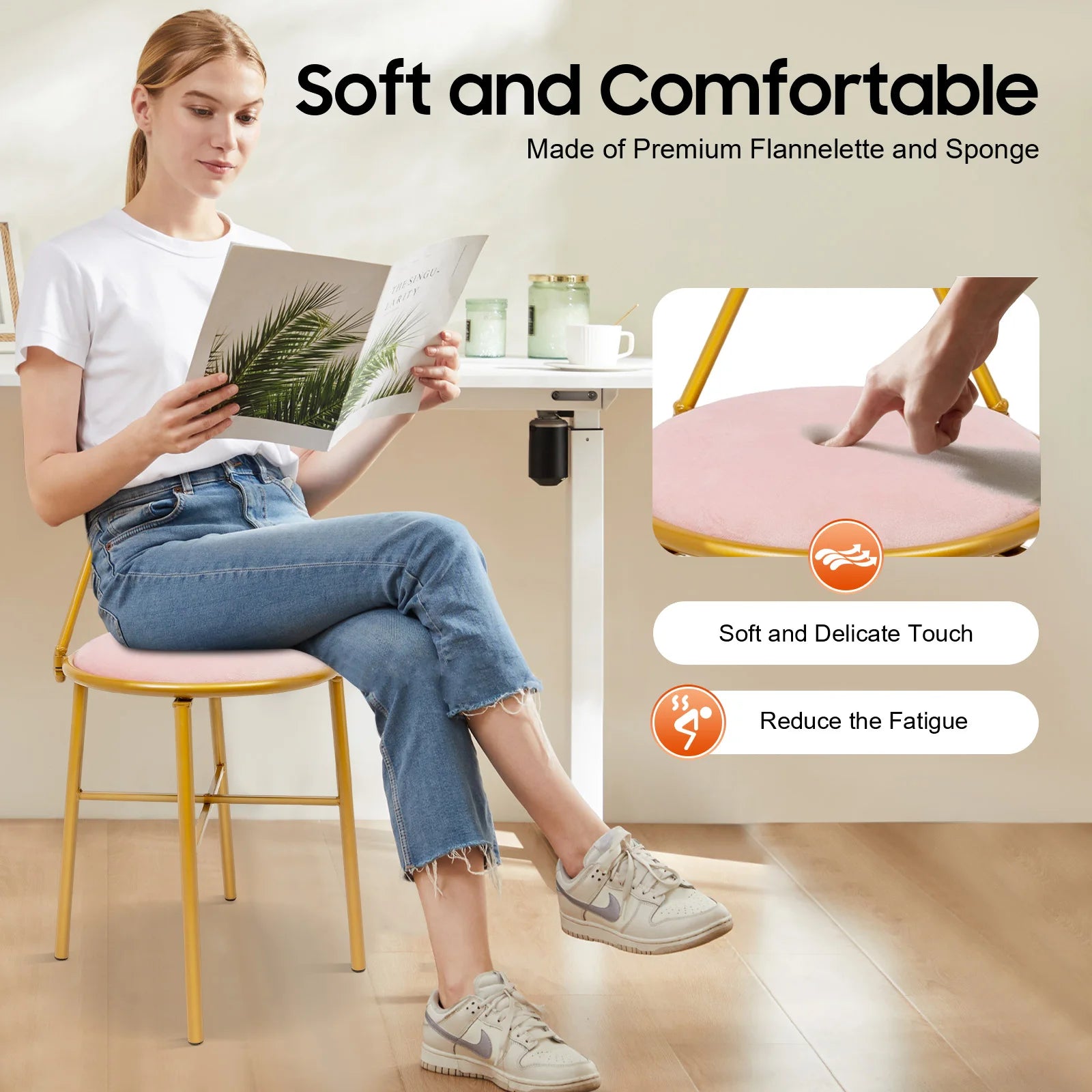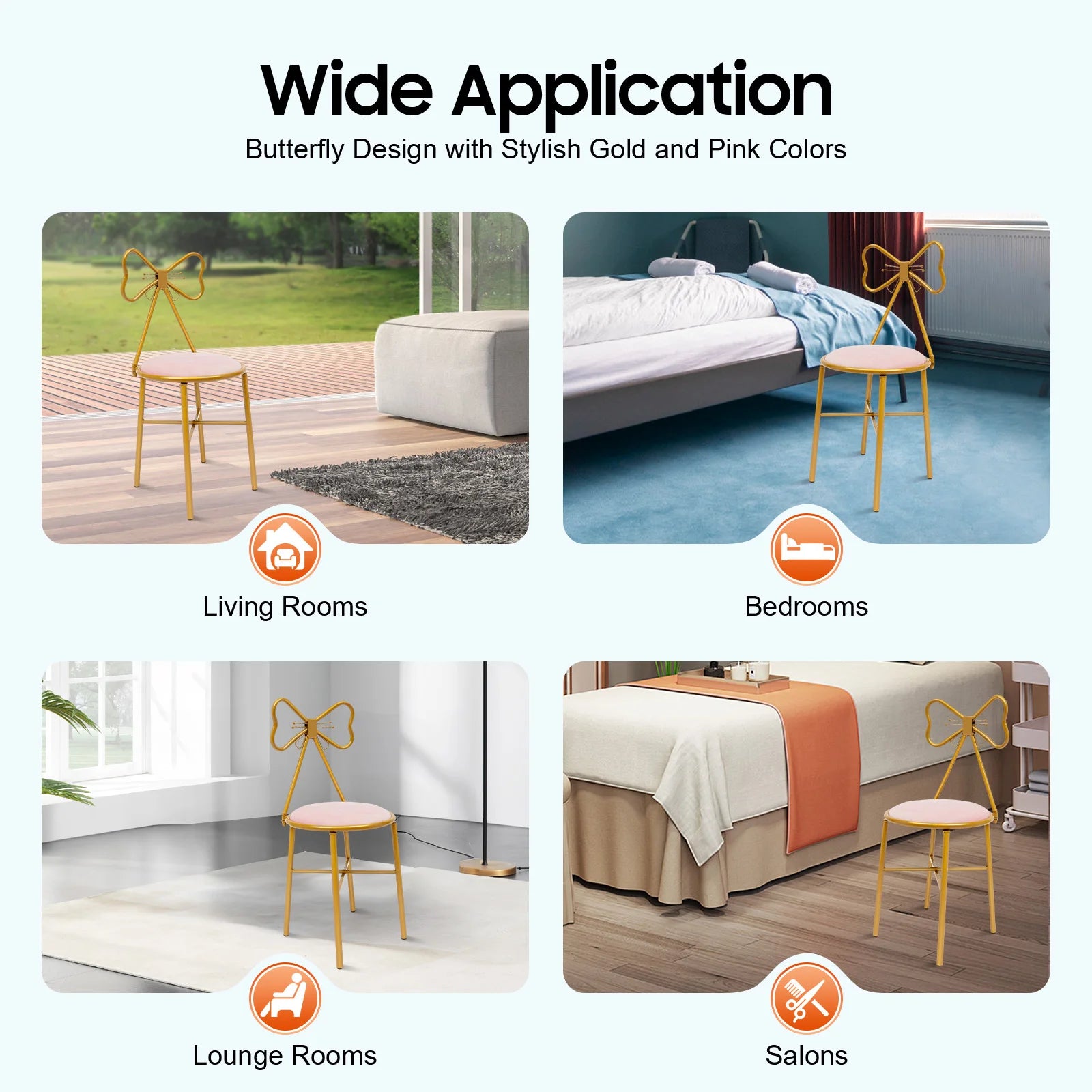 Elegant Pink Butterfly Backrest Chair with Soft Cushion, 100kg Load Iron Frame Dining Chair for Living Room Bedroom Cafe Decor