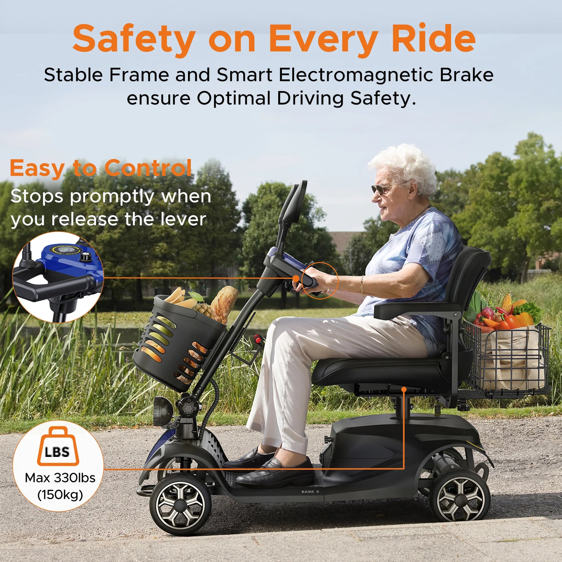 ENGWE 4-Wheel Mobility Scooter, 250W Motor, 5.6MPH, 24V 12Ah Battery, Dual Baskets, Foldable, Easy Control, Outdoor & Daily Use