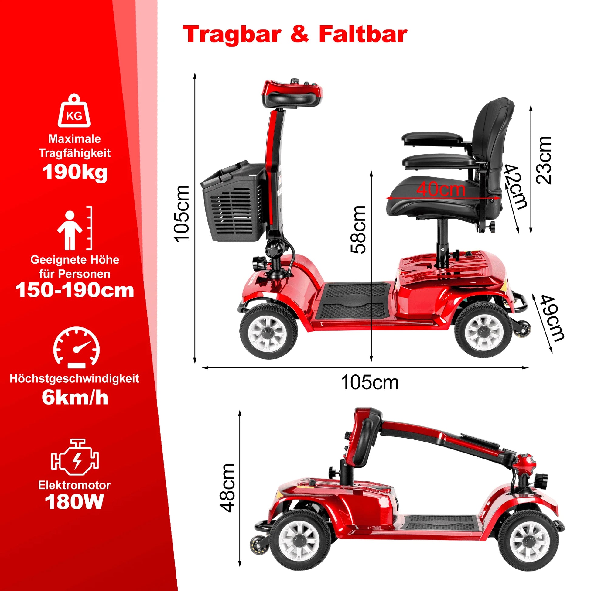 EOEOTWO 4 Wheel Mobility Scooter - Electric Powered Wheelchair Device - Compact Heavy Duty Mobile for Travel, Adults, Elderly