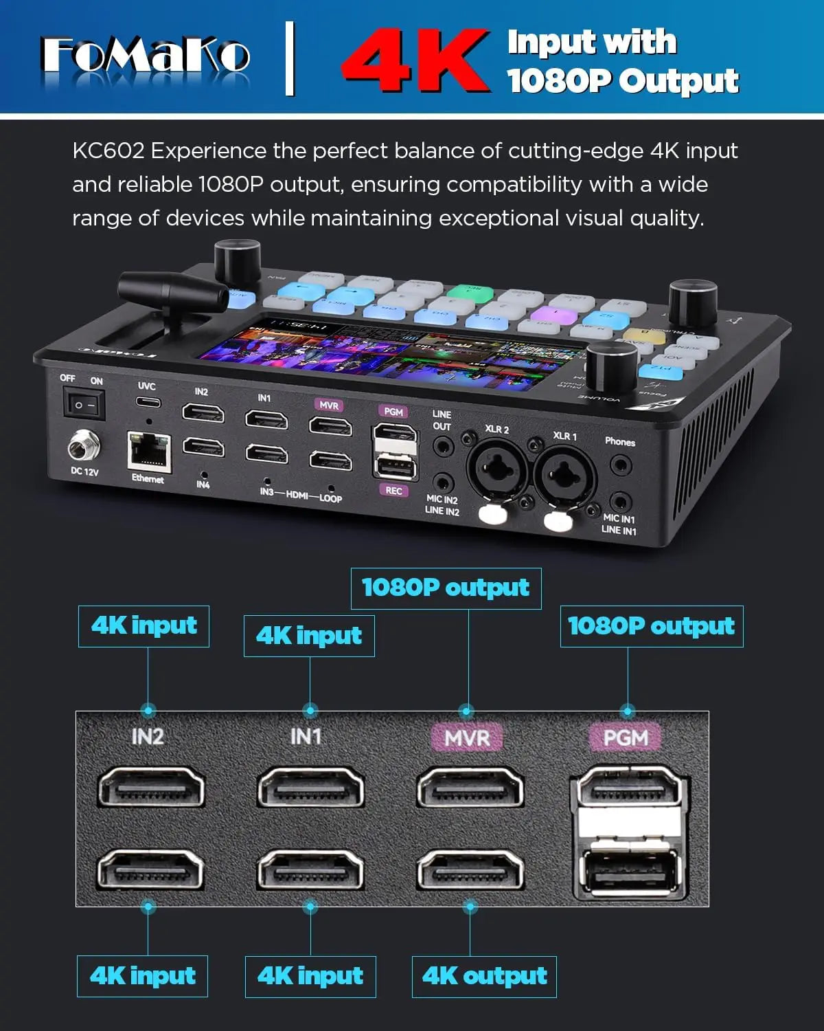 FoMaKo 4K PTZ Camera HDMI NDI, 20X Optical Zoom AI Auto-Tracking Gen 3,for Sports Live Streaming (K20UH NDIX3+KC602+KC608N)