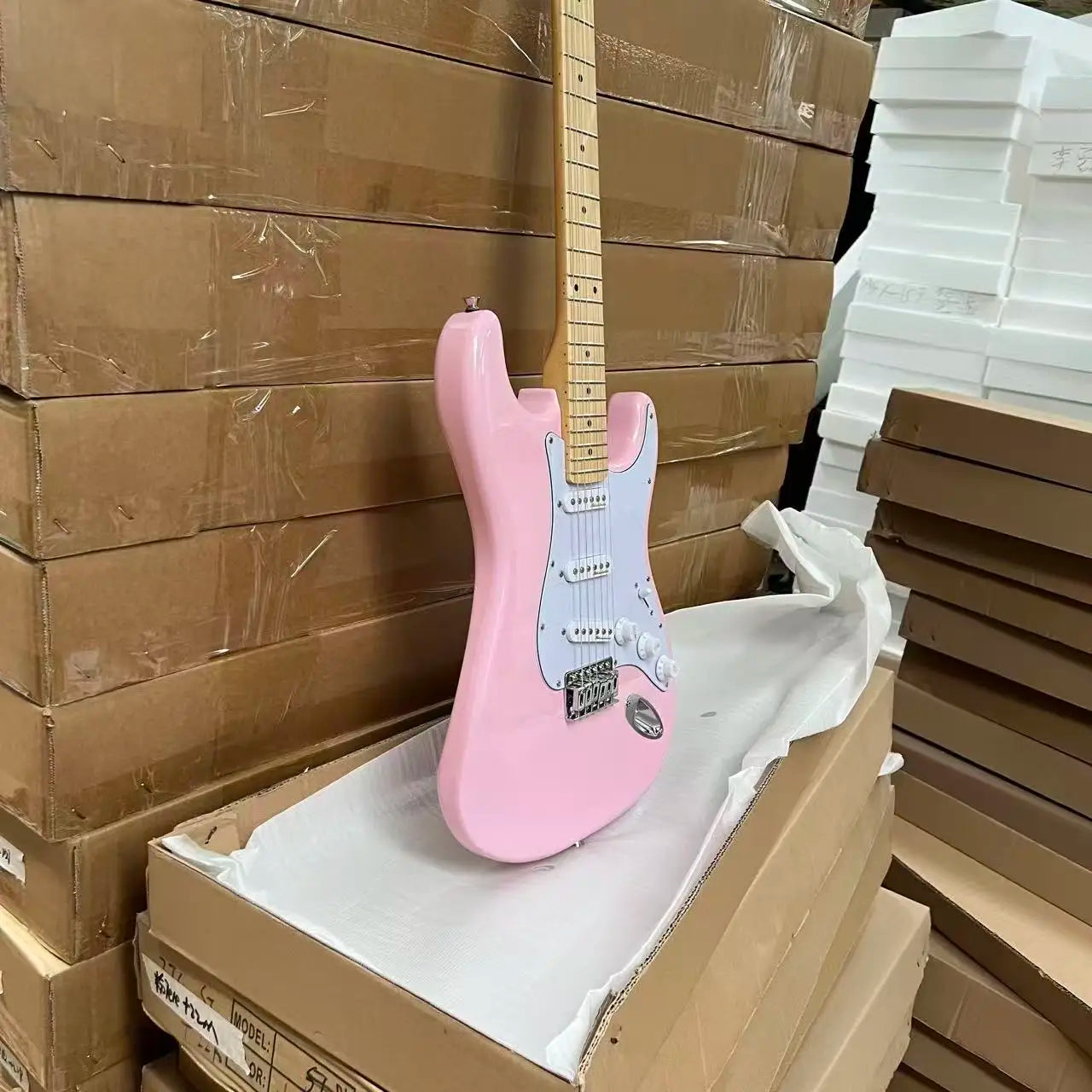 Free Shipping Handcrafted Pink ST Electric Guitar 21 Frets SSS Pickups Ideal for Beginners Pro Musicians