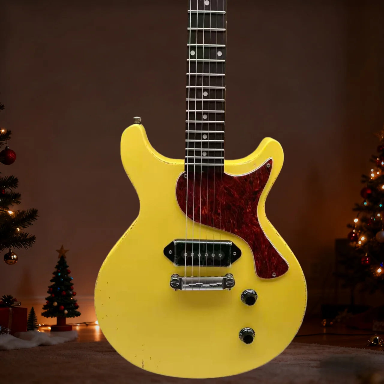 Free Shipping New Arrival Yellow Electric Guitar with P90 Pickups 22 Frets Fixed Bridge Ideal for Beginners Pro Musicians