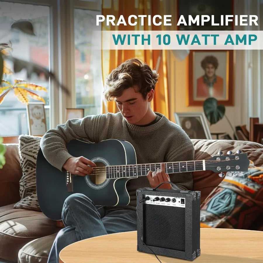 Full-Size Acoustic Electric Guitar with Amp featuring 41 Inch Basswood Body Complete Beginner to Intermediate Guitar Kit with C