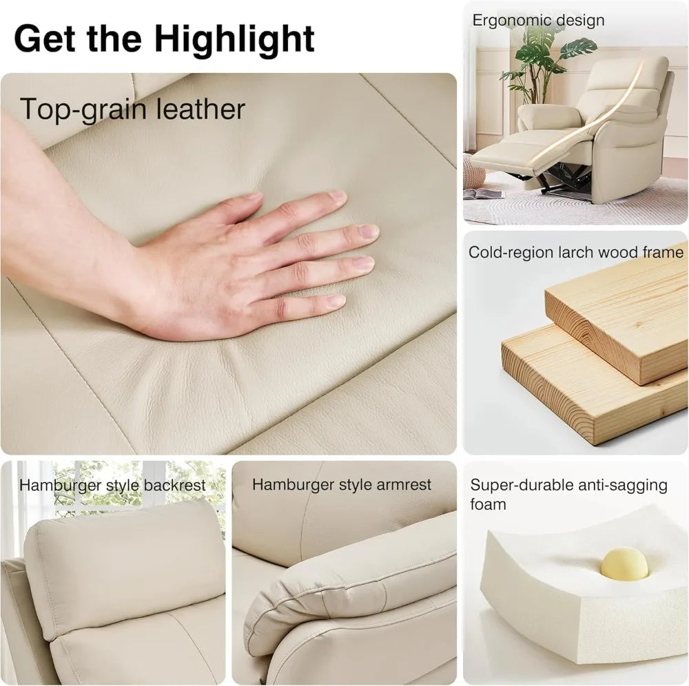 Genuine Leather Recliner Chair, Top Grain Italian Water-Washed, Lazy Boy Style for Living Room Theater Bedroom, Beige