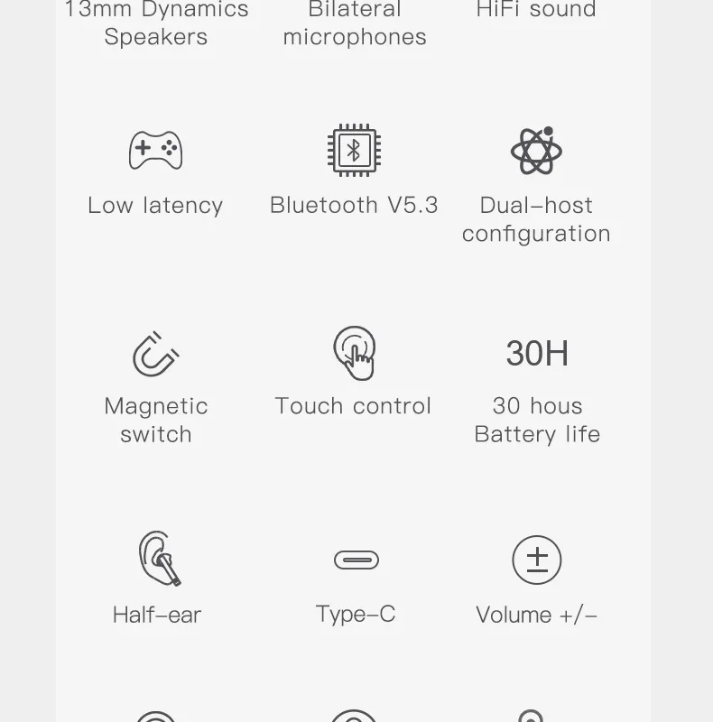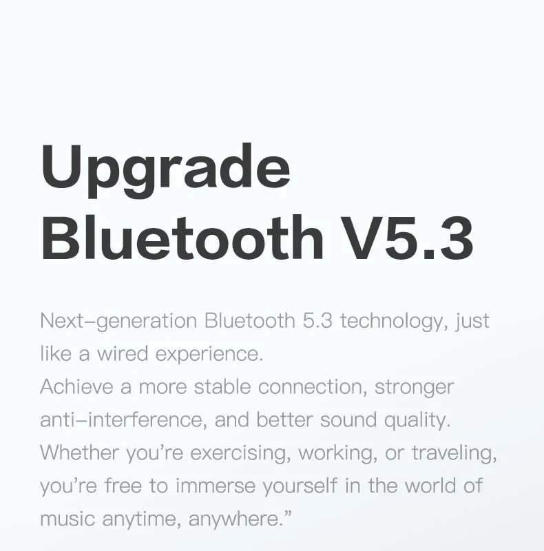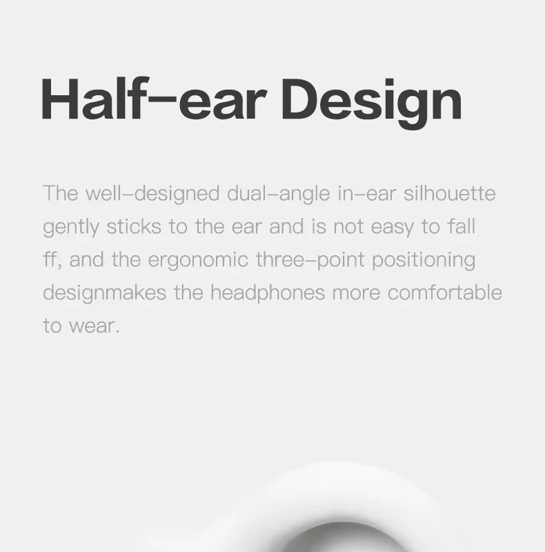 The well-designed dual-angle in-ear silhouette gently sticks to the ear and is not easy to fall off, and the ergonomic three-point positioning design makes the headphones more comfortable to wear.