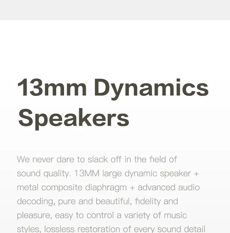 We never dare to slack off in the field of sound quality. 13MM large dynamic speaker + metal composite diaphragm + advanced audio decoding, pure and beautiful, fidelity and pleasure, easy to control a variety of music styles, lossless restoration of every sound detail delicate and three-dimensional listening enjoyment, I hope you will be "addicted" as soon as you listen to it.