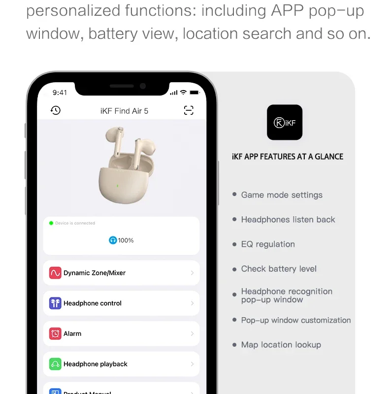 iKF-Find Air5 True Wireless Headphones Bluetooth App Control TWS Headset IPX5 Waterproof HiFi Earphone Gaming Earbuds with 4 Mic