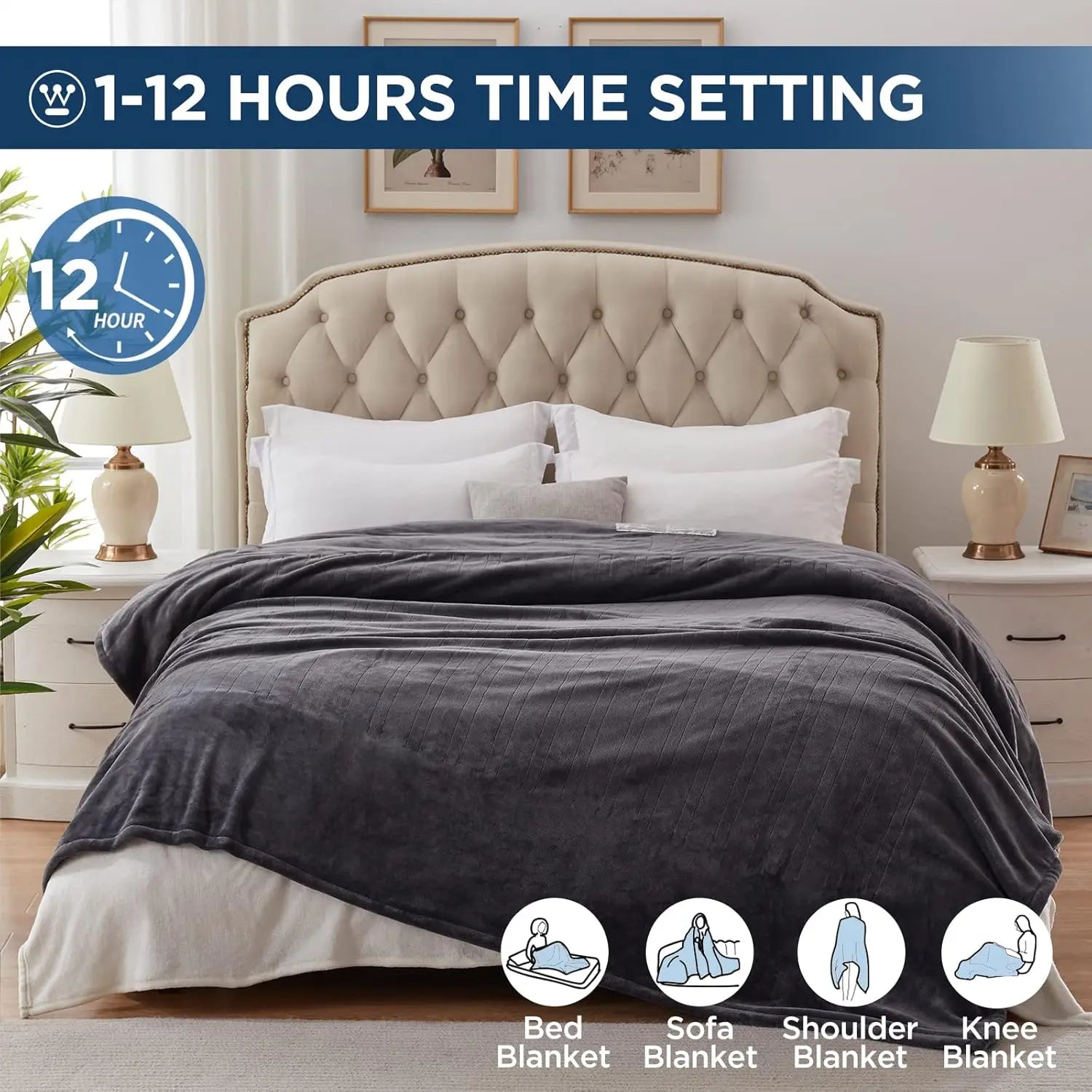 King Size Heated Blanket, 100" x 90", 10 Heat Levels, Auto-Off Timer, Machine Washable, ETL & FCC Certified