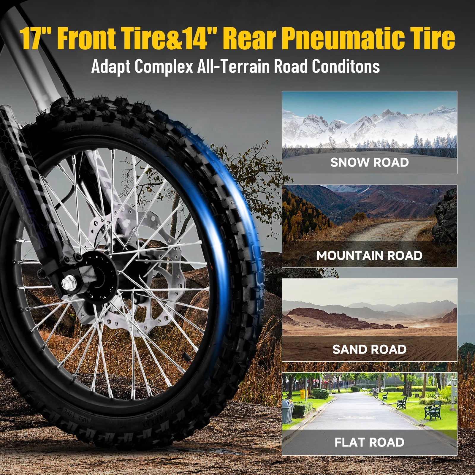 KOOZ HP117E 72V 5000W Pro Electric Dirt Bike for Adults,3 Speed Modes Electric Motorcycle Up to 50 MPH & 40 Miles Long-Range