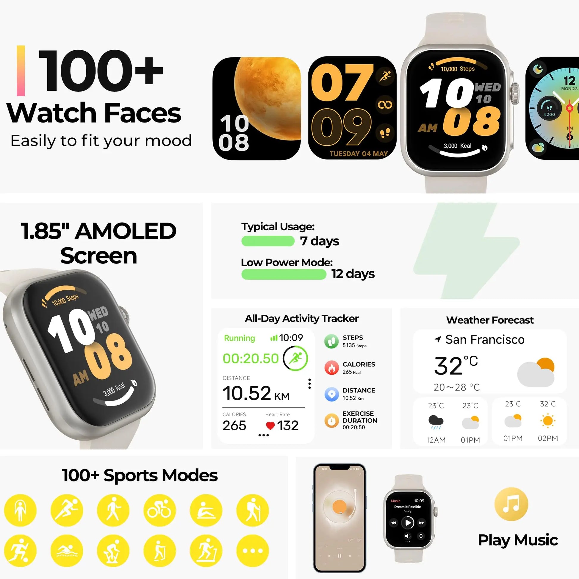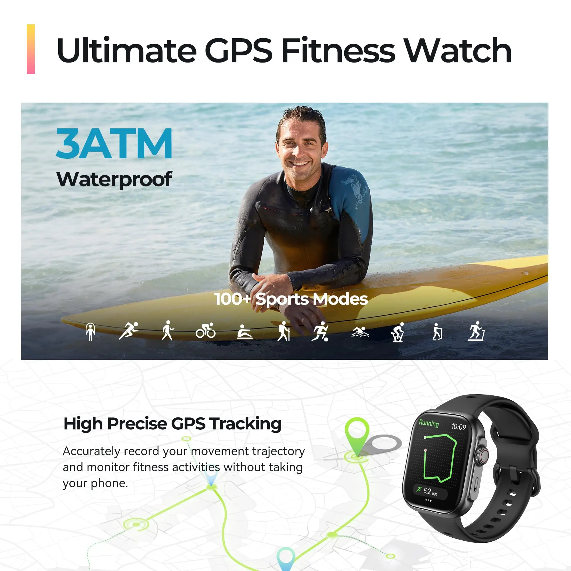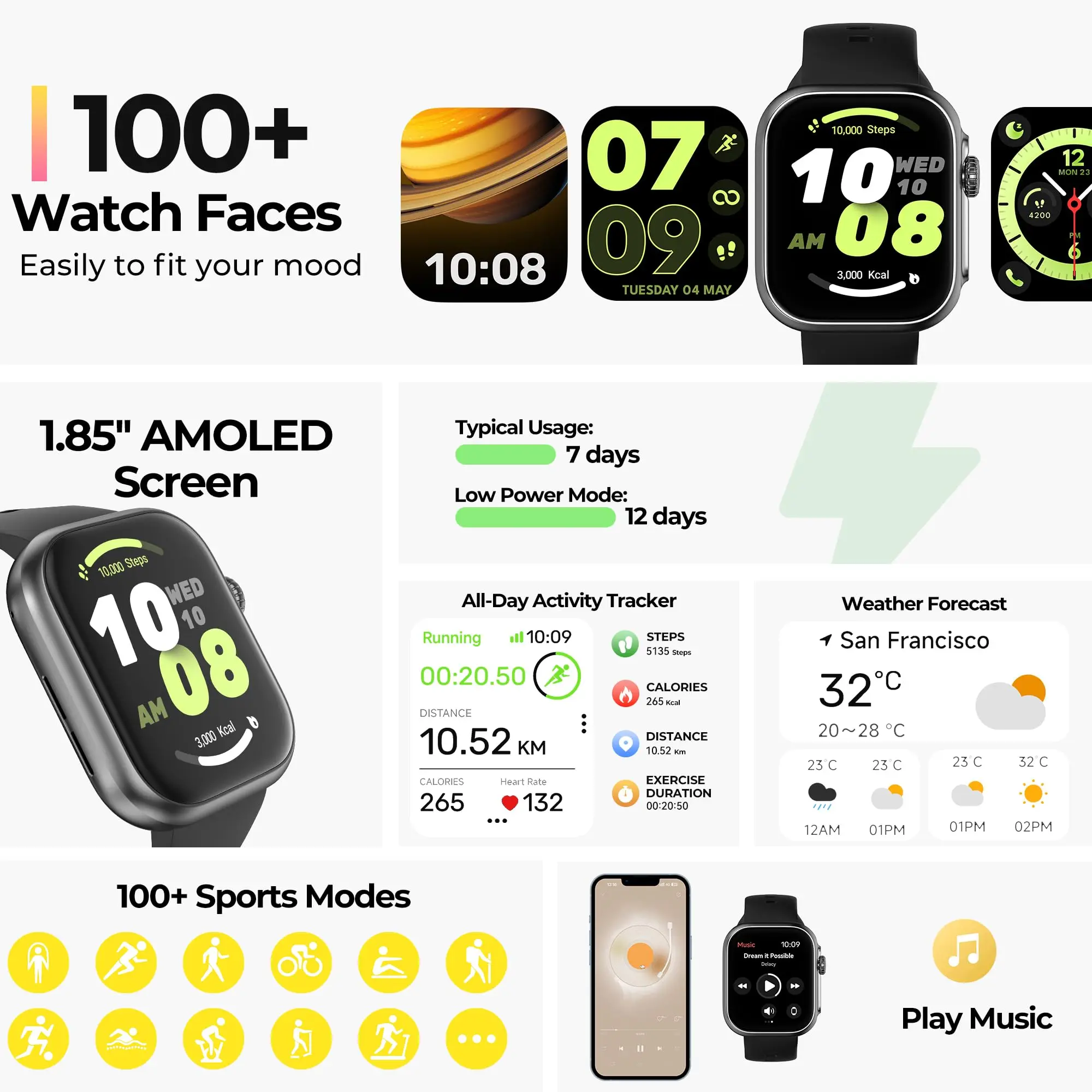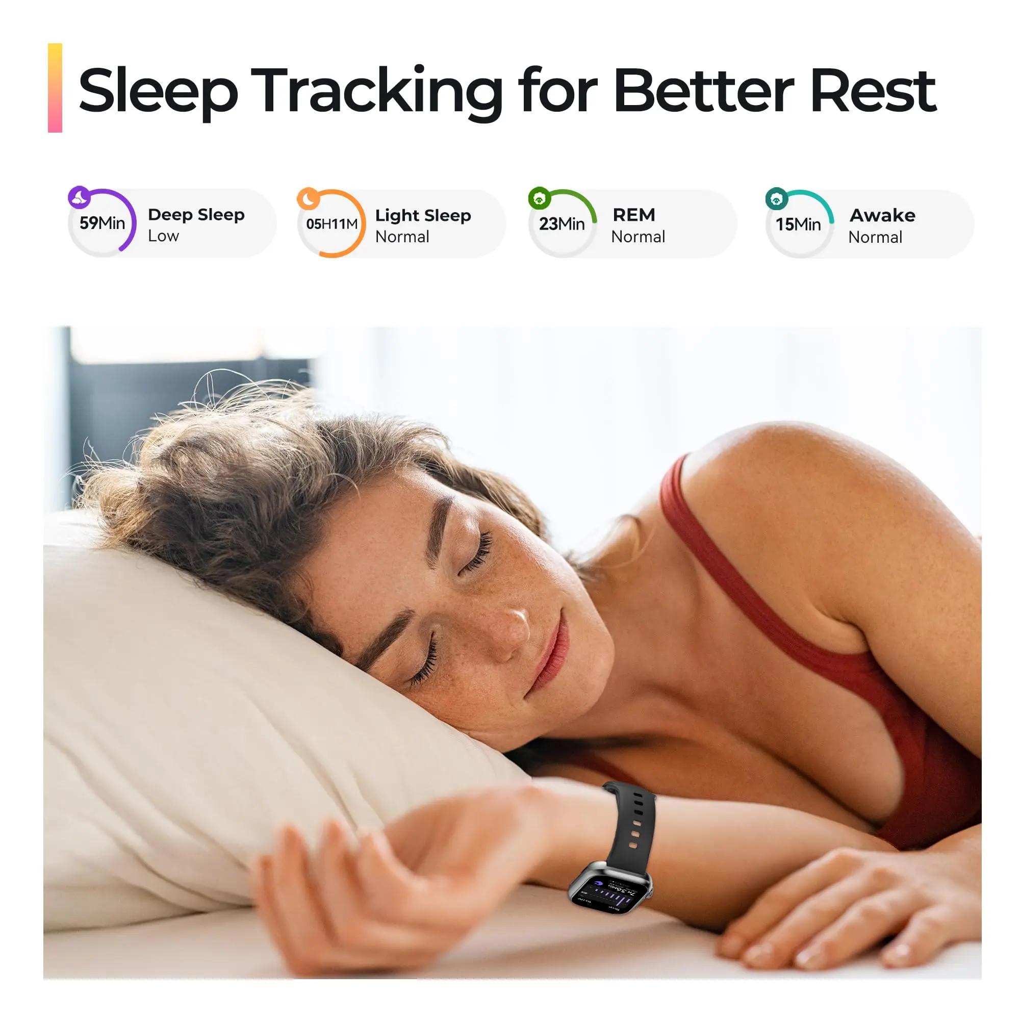 Little meatball, Smart Watch, Fitness Tracker, SpO2 Sleep Monitor, 1.83-inch Wireless Talk 13-Day Battery, (Black)