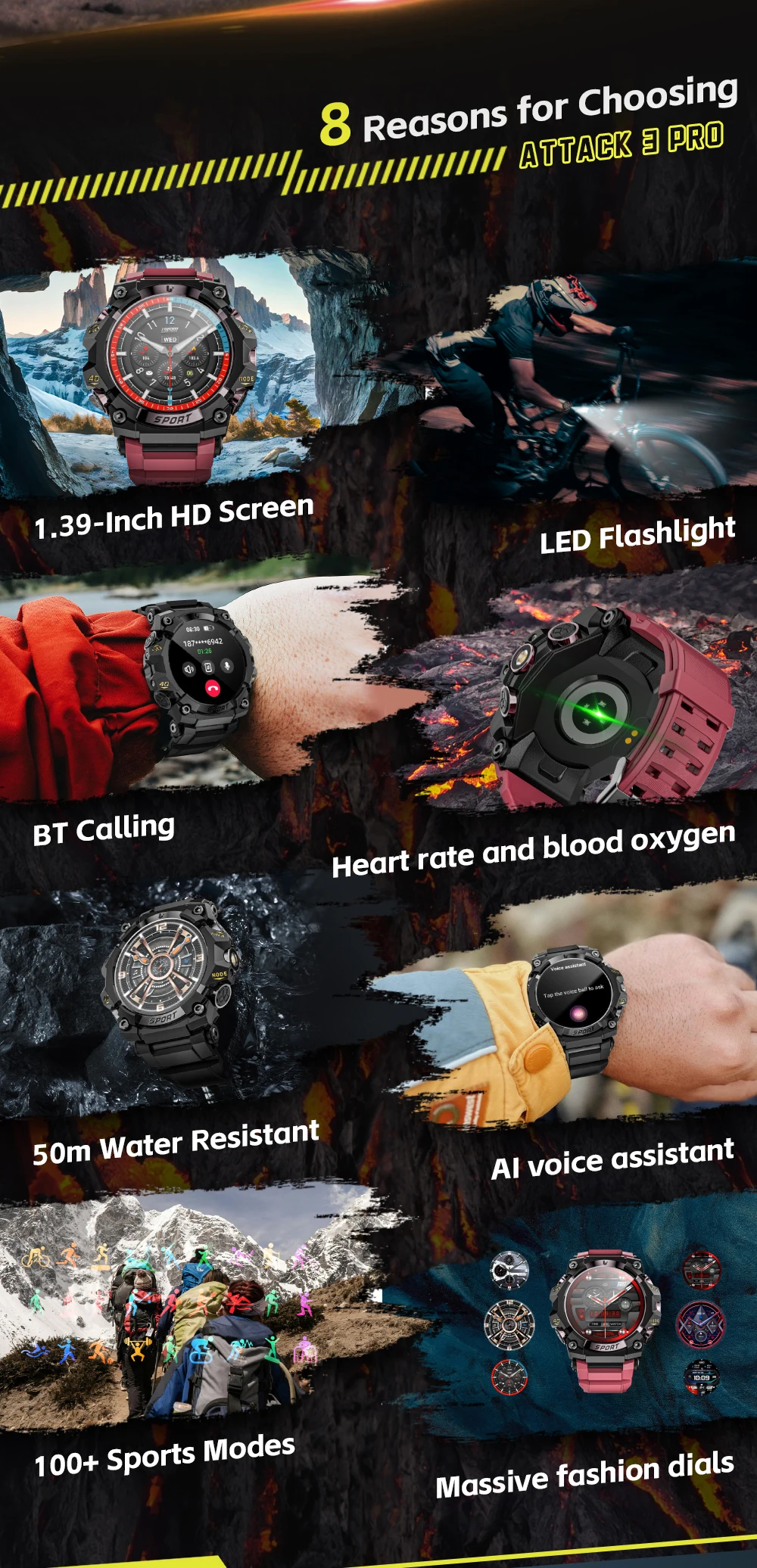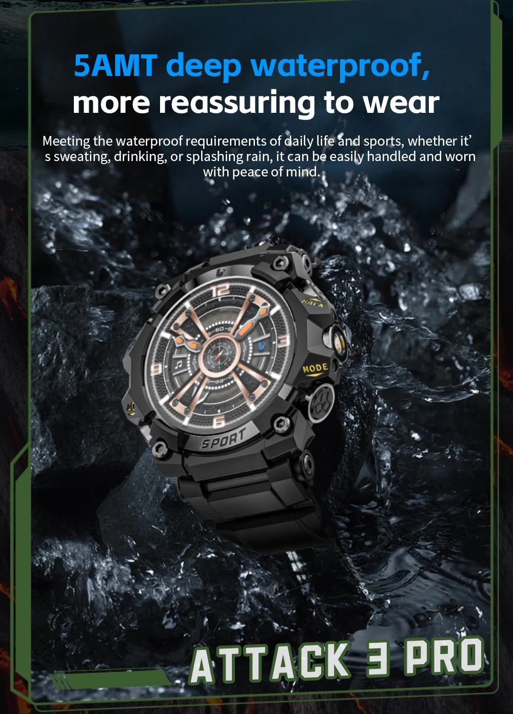 LOKMAT New Rugged Smart Watch Bluetooth Calls Wristband Fitness Tracker Flashlight Message Push Heart Rate Monitor for Phone