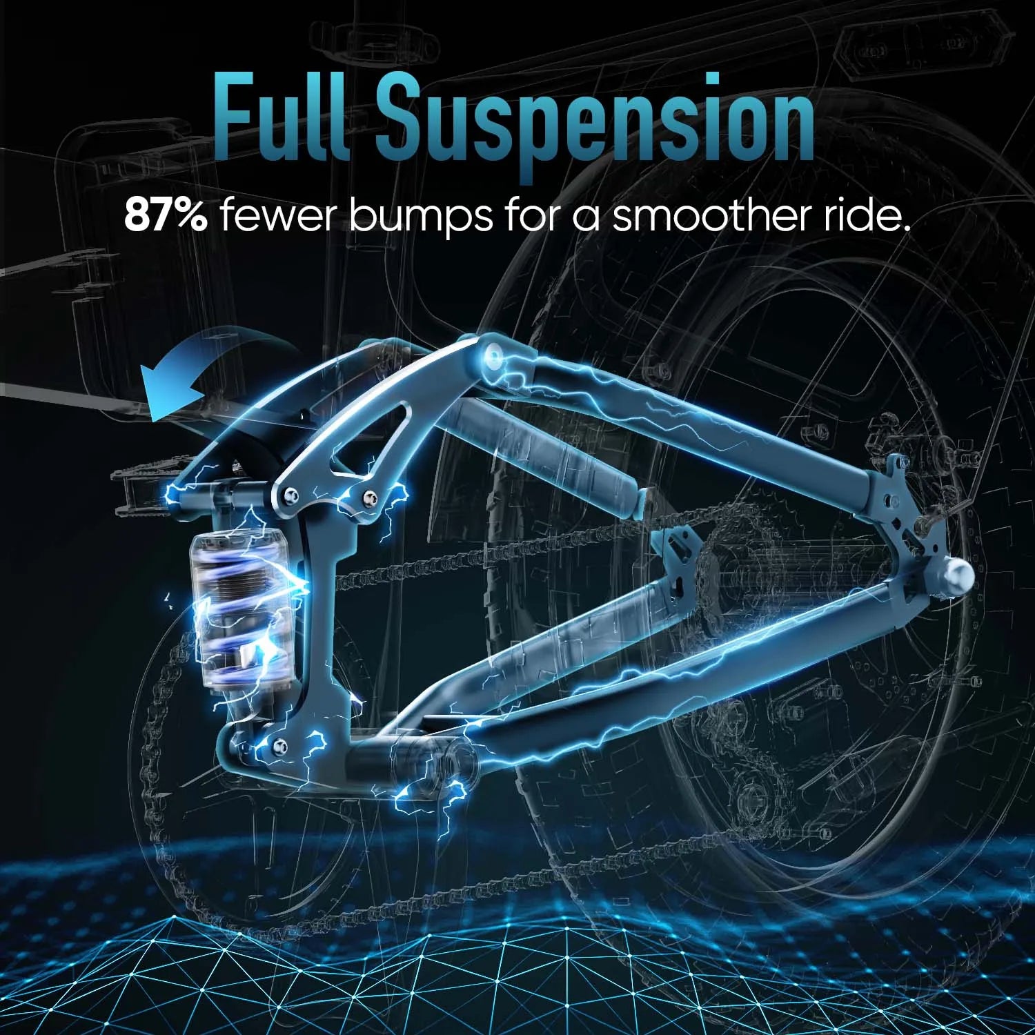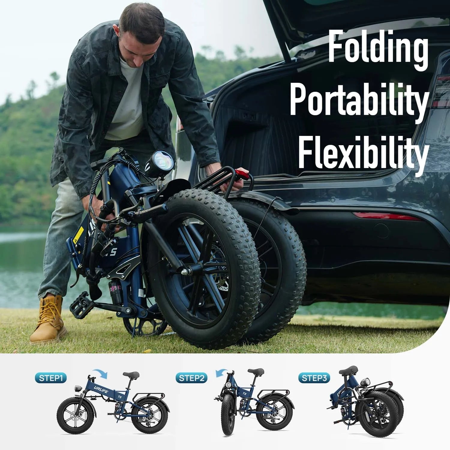 Peak 1500W Foldable Electric Mountain Bike with 48V 13Ah Removable Battery 28MPH 80 Mile Range 20"*4" fat Tire E-bike