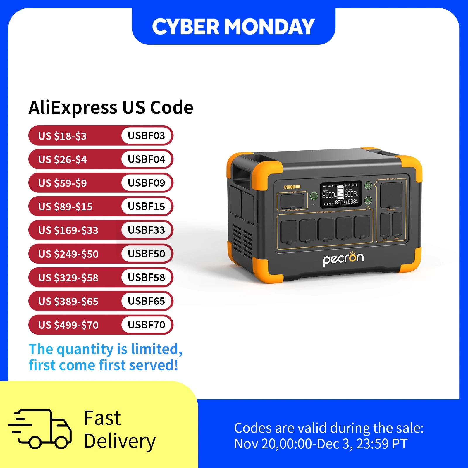 pecron E1000LFP Portable Power Station 1024Wh LiFePO4 Battery Backup 1800W Solar Generator Expandable to 4096Wh Fast Charging