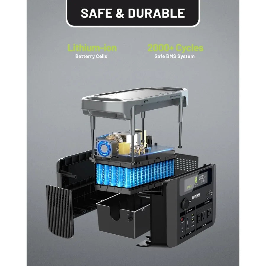 Portable Power Station 600W 655Wh 182 000mAh Solar Generator with 100W USBC Output 120V Pure Sine Wave AC Outlets for Outdoor C