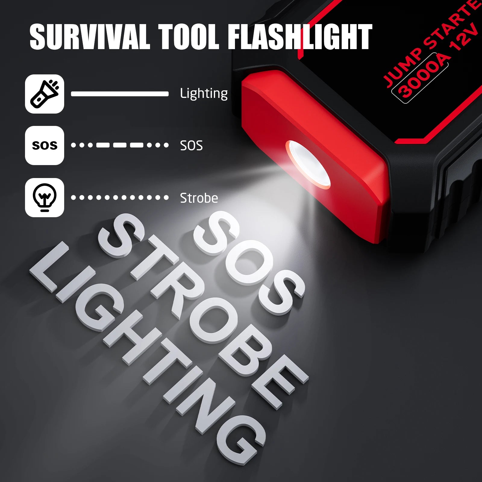 Povasee Jump Starter Power Pack 3000A Car Battery Booster Jump Starter Car Jump Starter Power Bank Jump Pack with Jump Leads