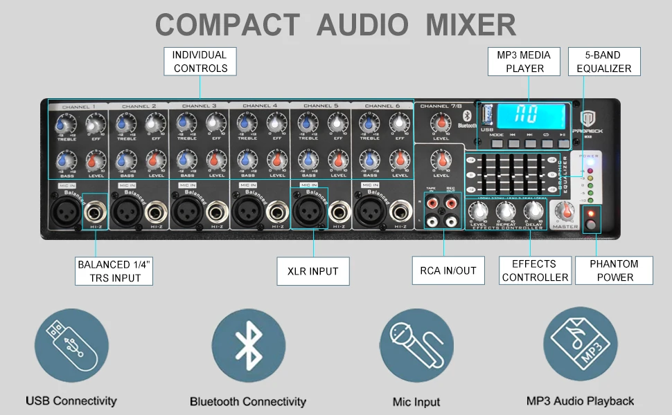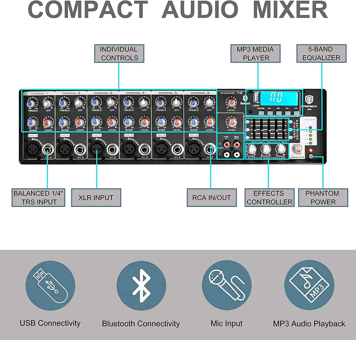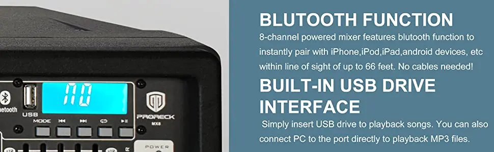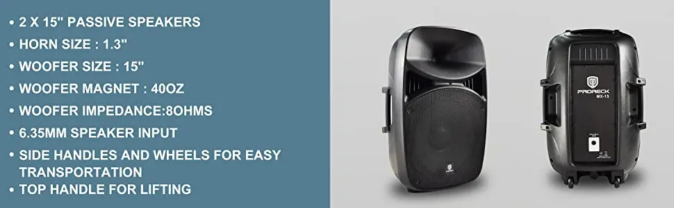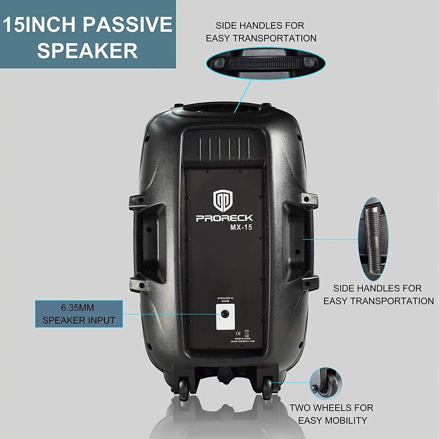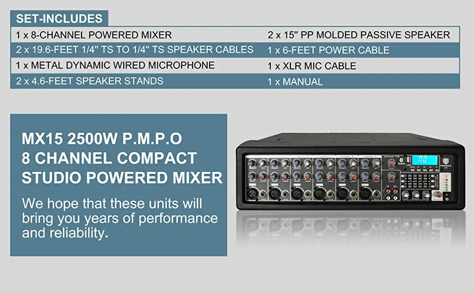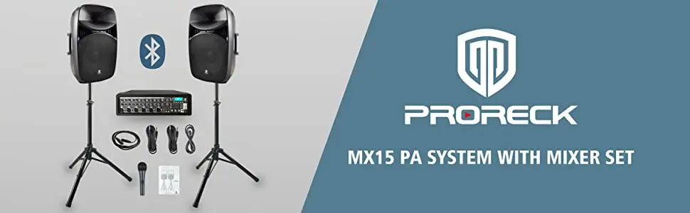 PRORECK Powered MX15 15inch 2500W Bluetooth PA System Mixer/Amp with Stands/Mic Effect Controller 48V Phantom Power, DJ SET