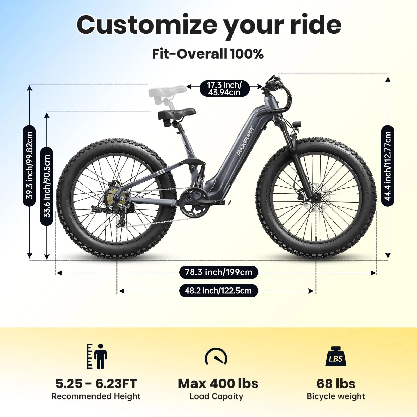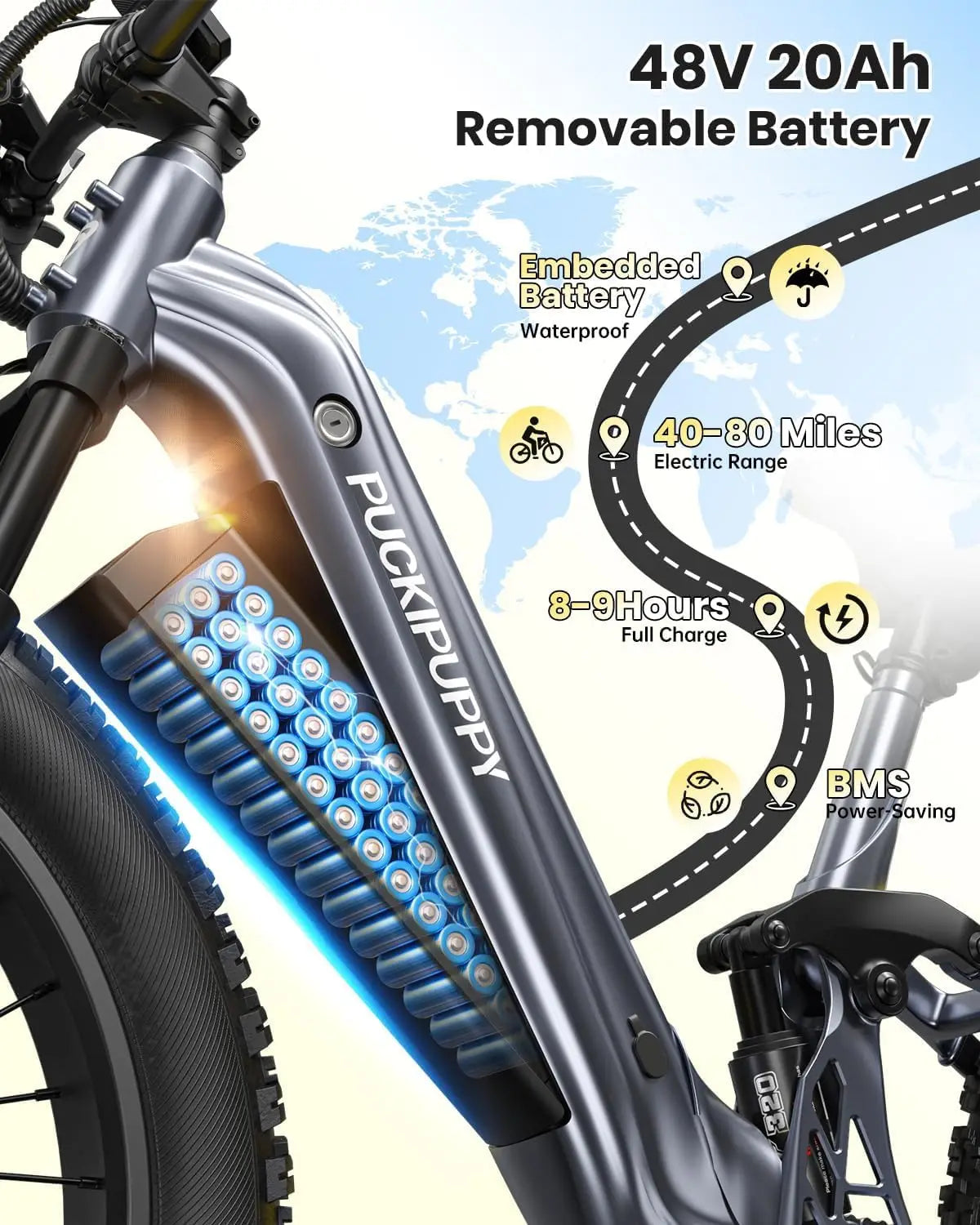 PUCKIPUPPY Boxer St Electric Bike for Adults 960W 48V 20AH Electric Bicycles with Luxury Accessory Pack and Extra 15Ah Battery
