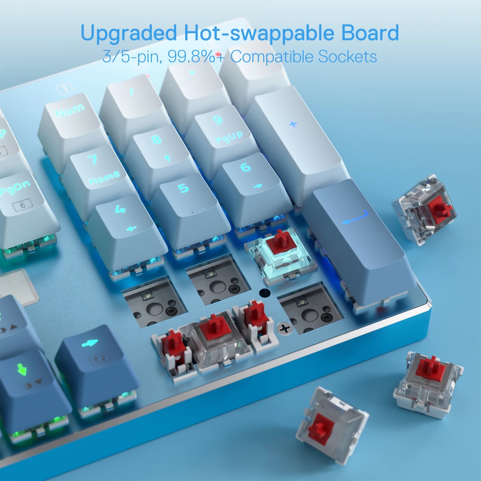 - 99.8%+ hot-swappable compatibility with free-mod switches lets you tailor feel, actuation force, and sound profile without any soldering or downtime.